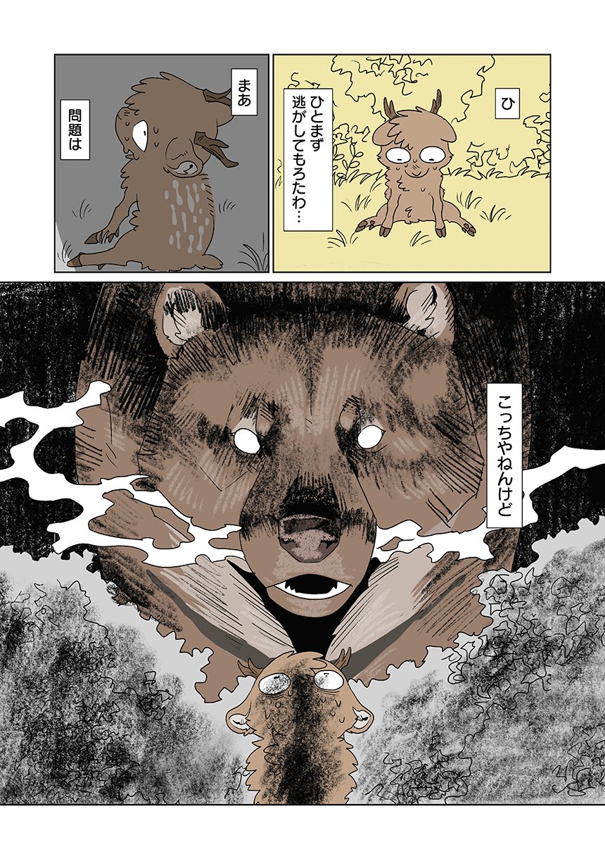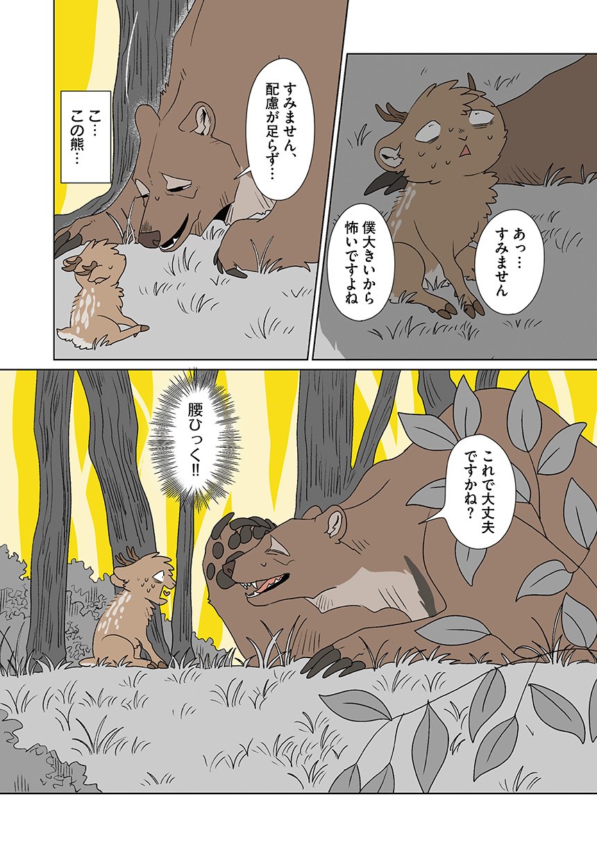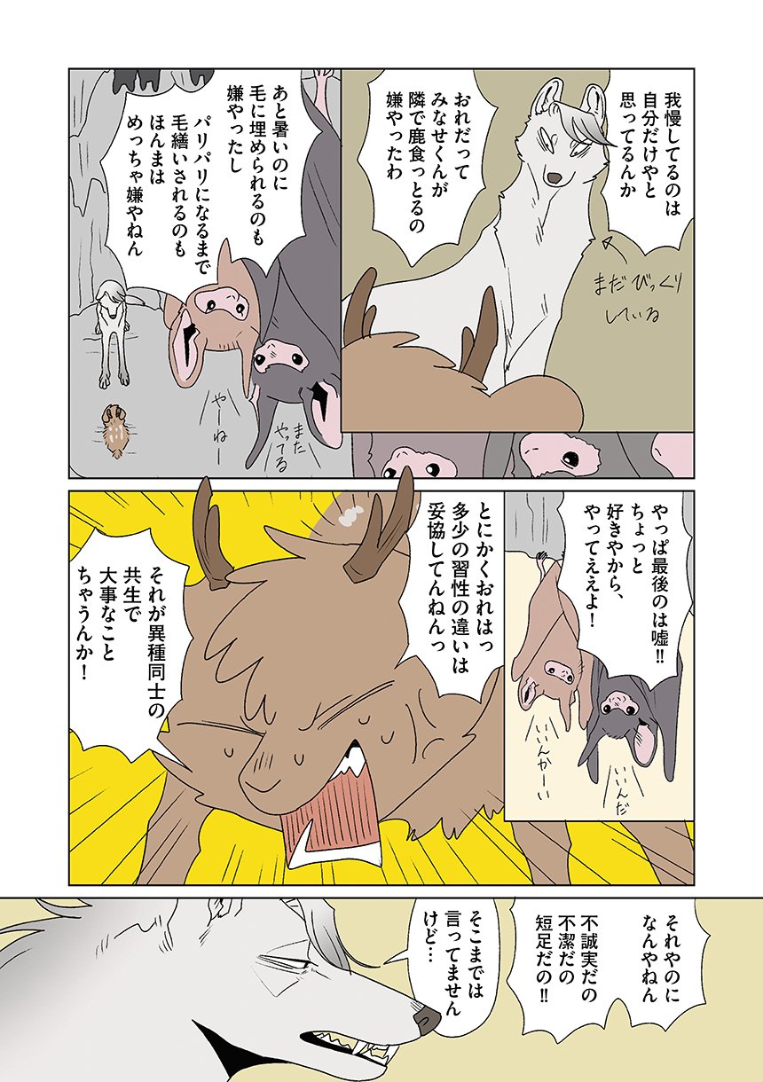群れを追い出されたシカ・しのさきは、森で命を落としかけた瞬間、通りがかったオオカミ・みなせに救われる。