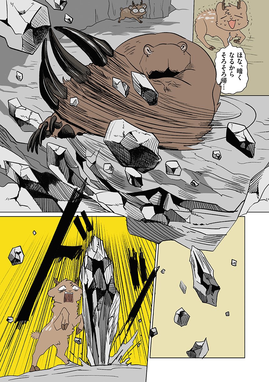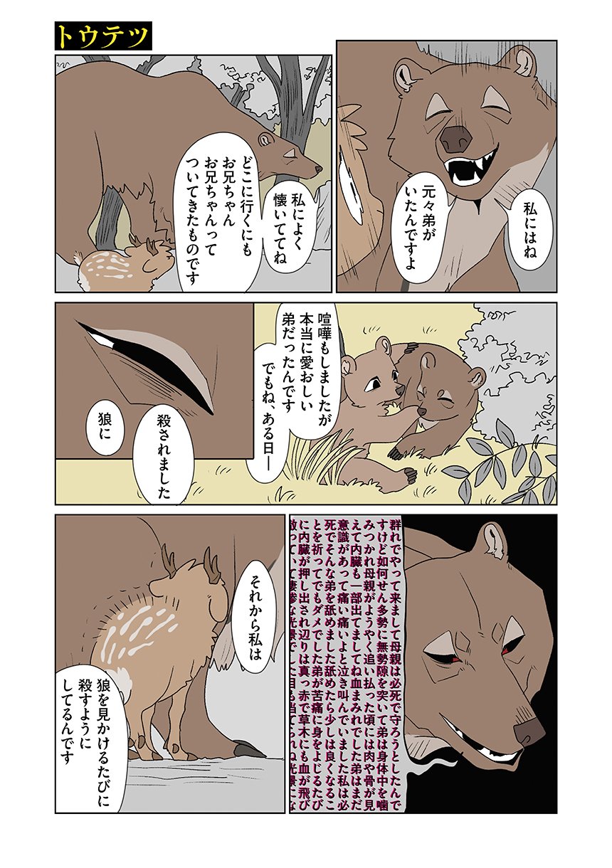 群れを追い出されたシカ・しのさきは、森で命を落としかけた瞬間、通りがかったオオカミ・みなせに救われる。