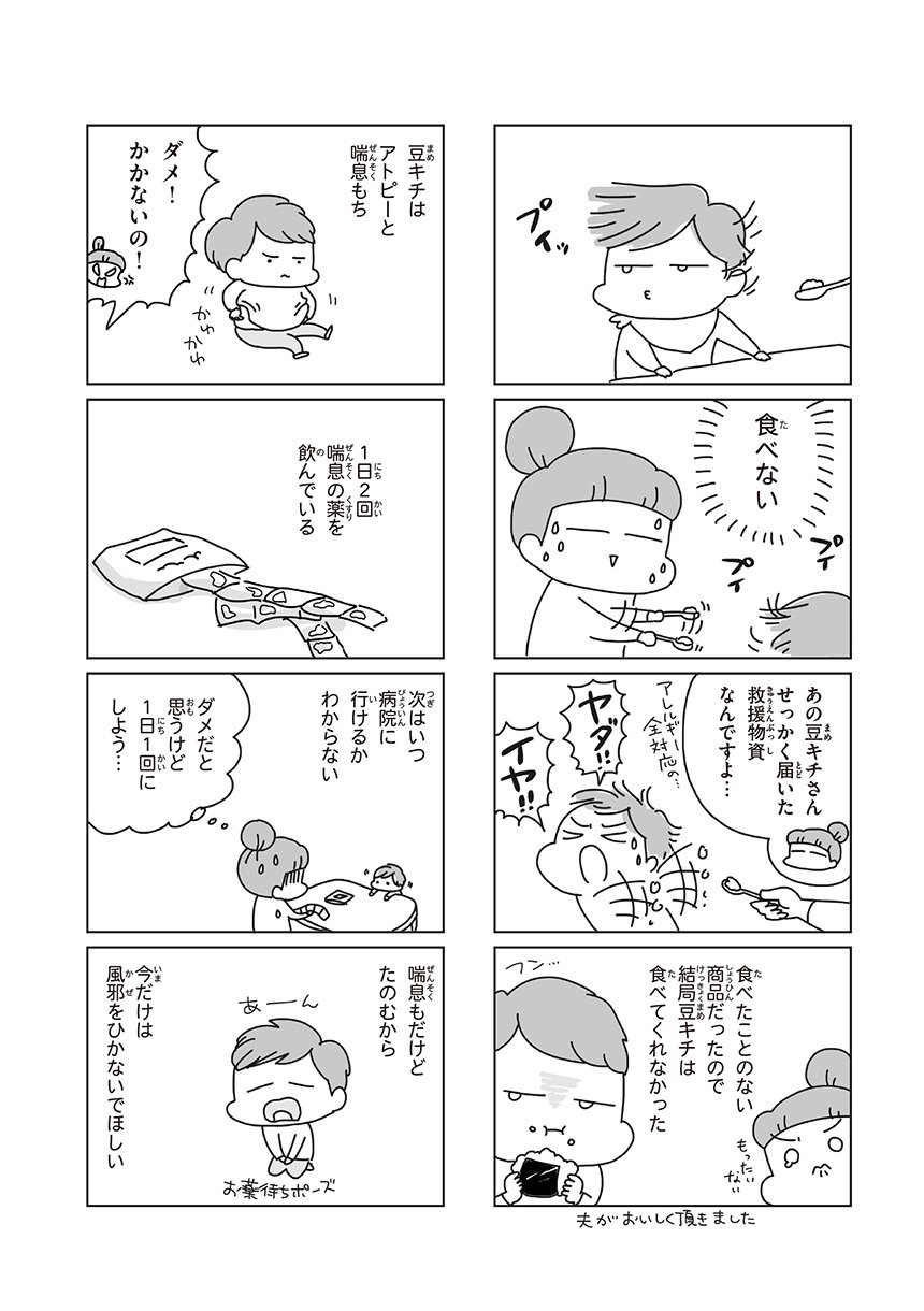 東日本大震災で、突然日常を奪われた1歳の息子と20代の夫婦。子の夜泣きやアレルギーなどから避難所生活をあきらめて自宅避難で乗り越えた家族の、3月11日から4月1日までの実録コミックエッセイ。