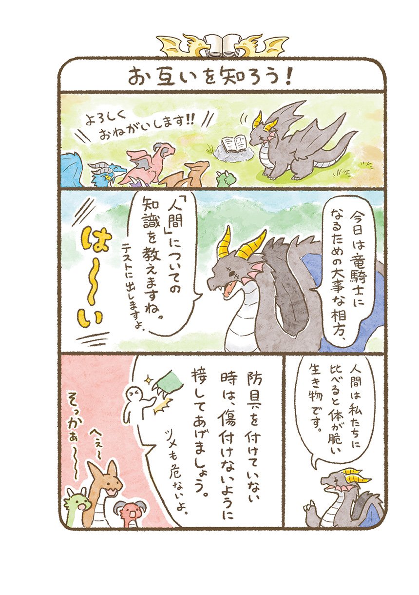立派な竜騎士となるため人間と竜がともに学ぶ竜騎士専門学校。日々の厳しい訓練のほか、学校行事や休みも相棒と共に過ごすことで絆を深めていきます。