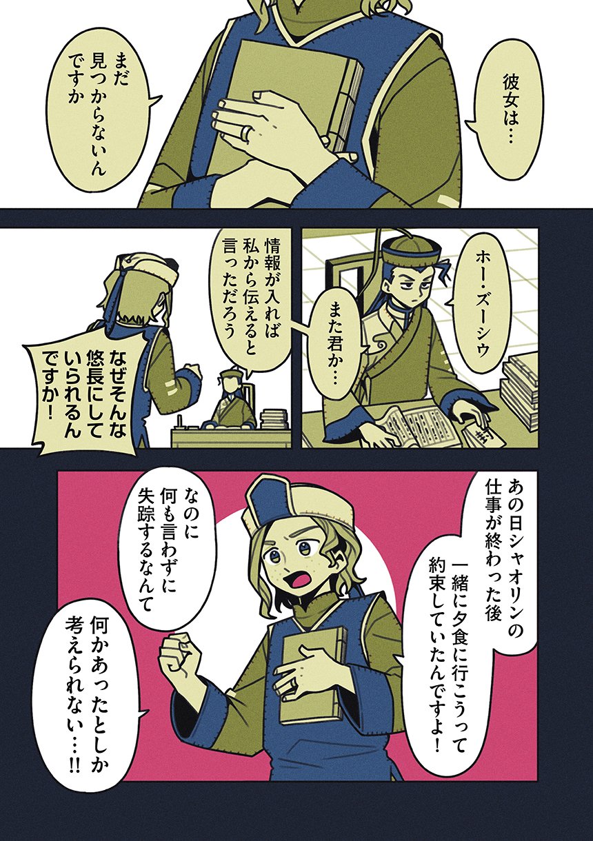 隠れて調査を続けるうちに、イーシェンはある“違和感”に気づいてしまい――。