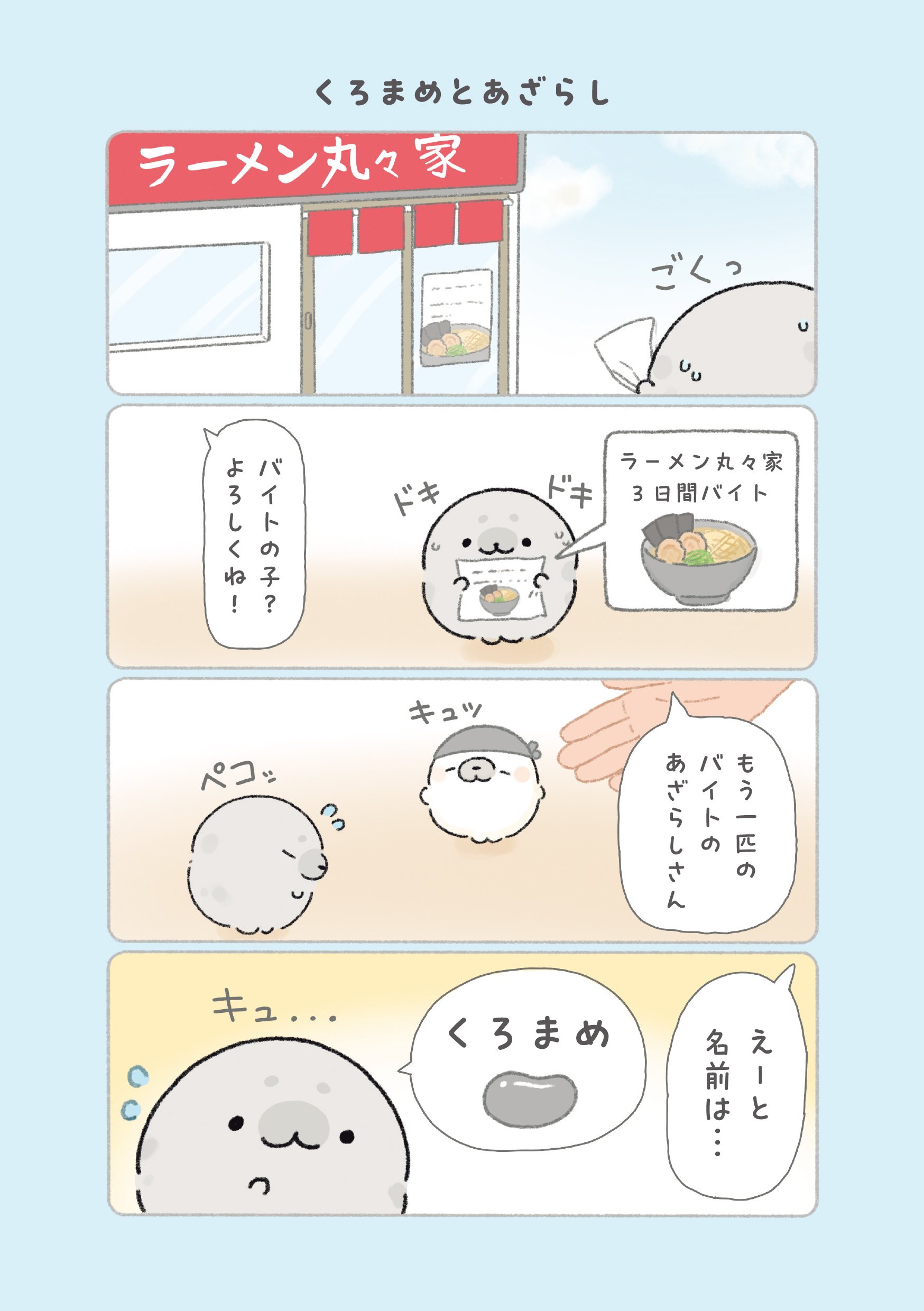 アルバイト先では同じ種族の「くろまめ」とも出会い、交流が広がっていきます。