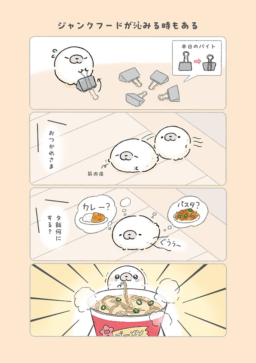 アルバイト先では同じ種族の「くろまめ」とも出会い、交流が広がっていきます。