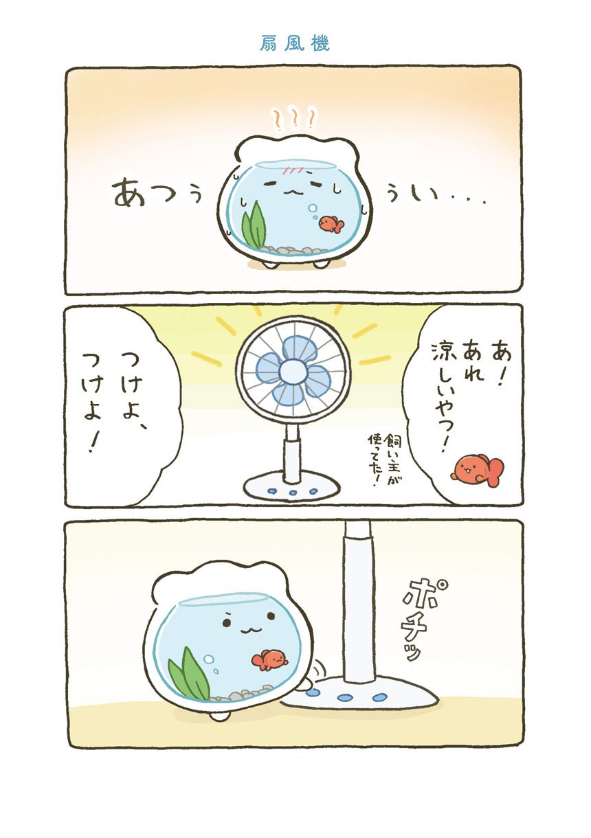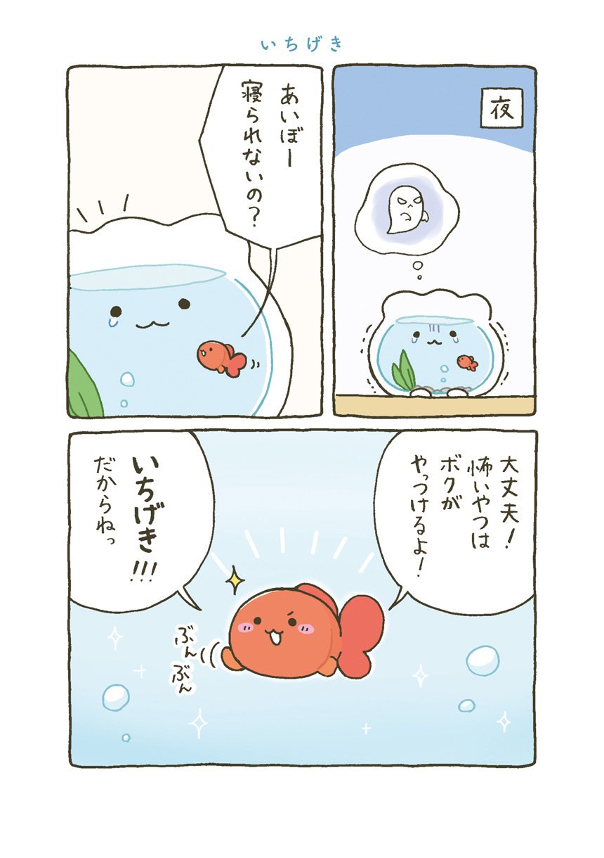 はじめてできた大切な大切なお友達とずーっといっしょの日常がはじまります。すぐに転んで泣いちゃうけれど、金魚くんのためにがんばれ金魚鉢ちゃん!
