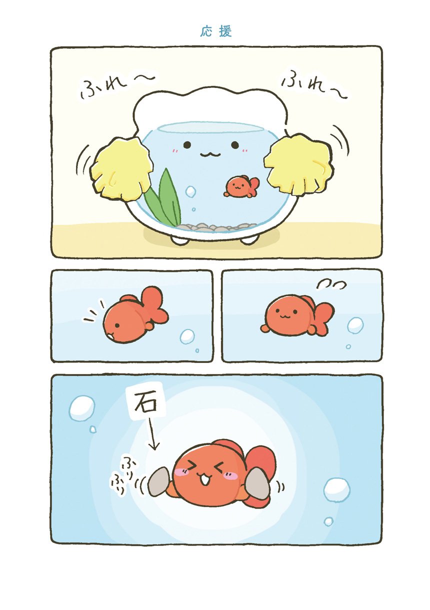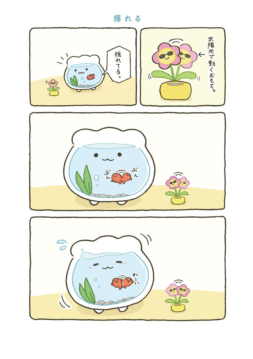 はじめてできた大切な大切なお友達とずーっといっしょの日常がはじまります。すぐに転んで泣いちゃうけれど、金魚くんのためにがんばれ金魚鉢ちゃん!