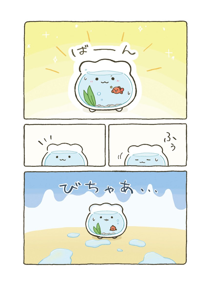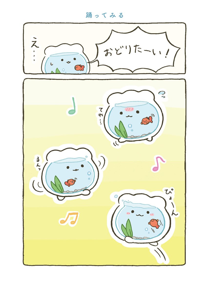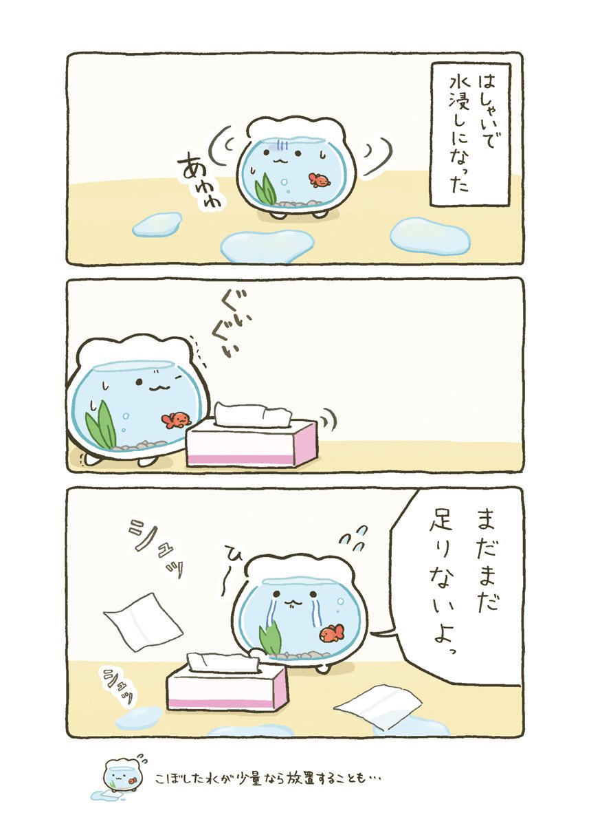 はじめてできた大切な大切なお友達とずーっといっしょの日常がはじまります。すぐに転んで泣いちゃうけれど、金魚くんのためにがんばれ金魚鉢ちゃん!
