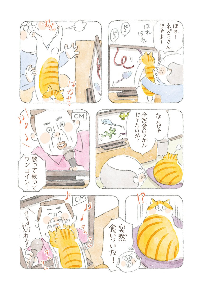 ある日、タマがテレビを倒して壊してしまいます。音のない家で落ち着かない大吉さん。