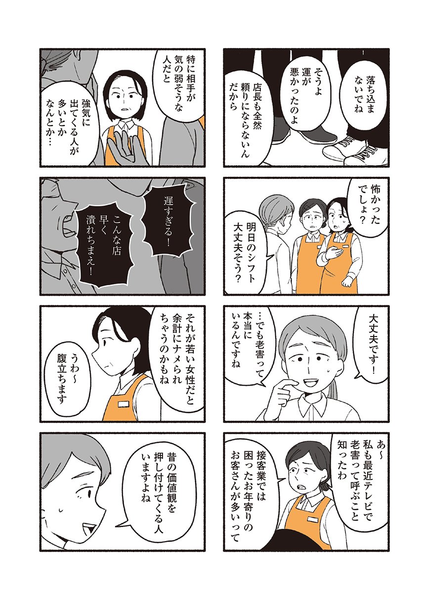 娘も巣立ち、パートで働きながら、定年退職間近の夫と二人で暮らしている栄子(54歳)は、近くに住む80代の父と母の老害っぷりに頭を悩ませている。