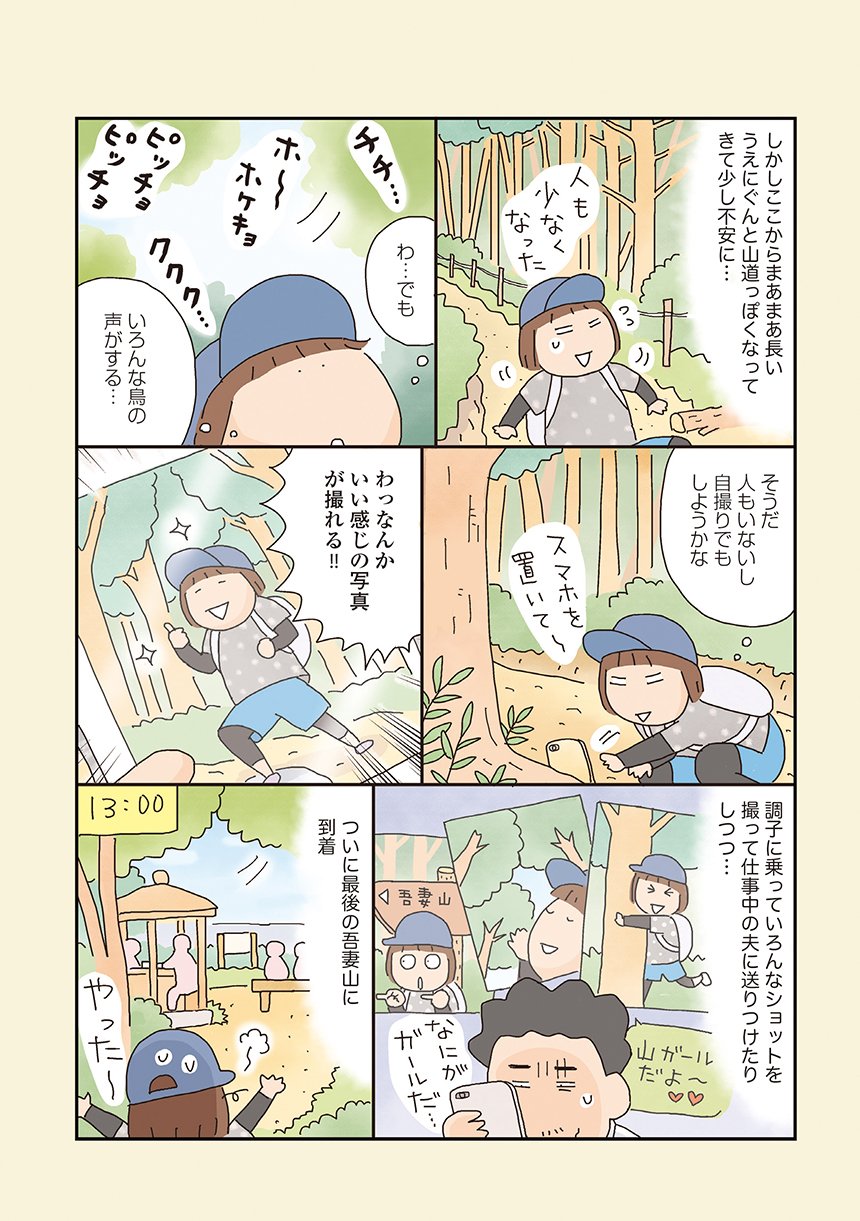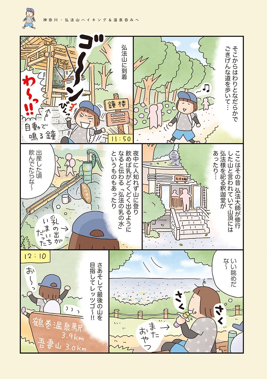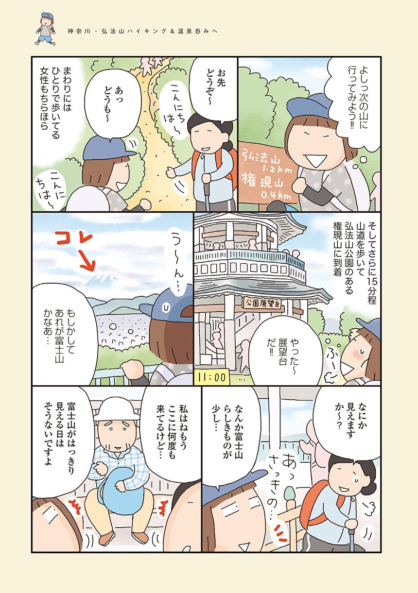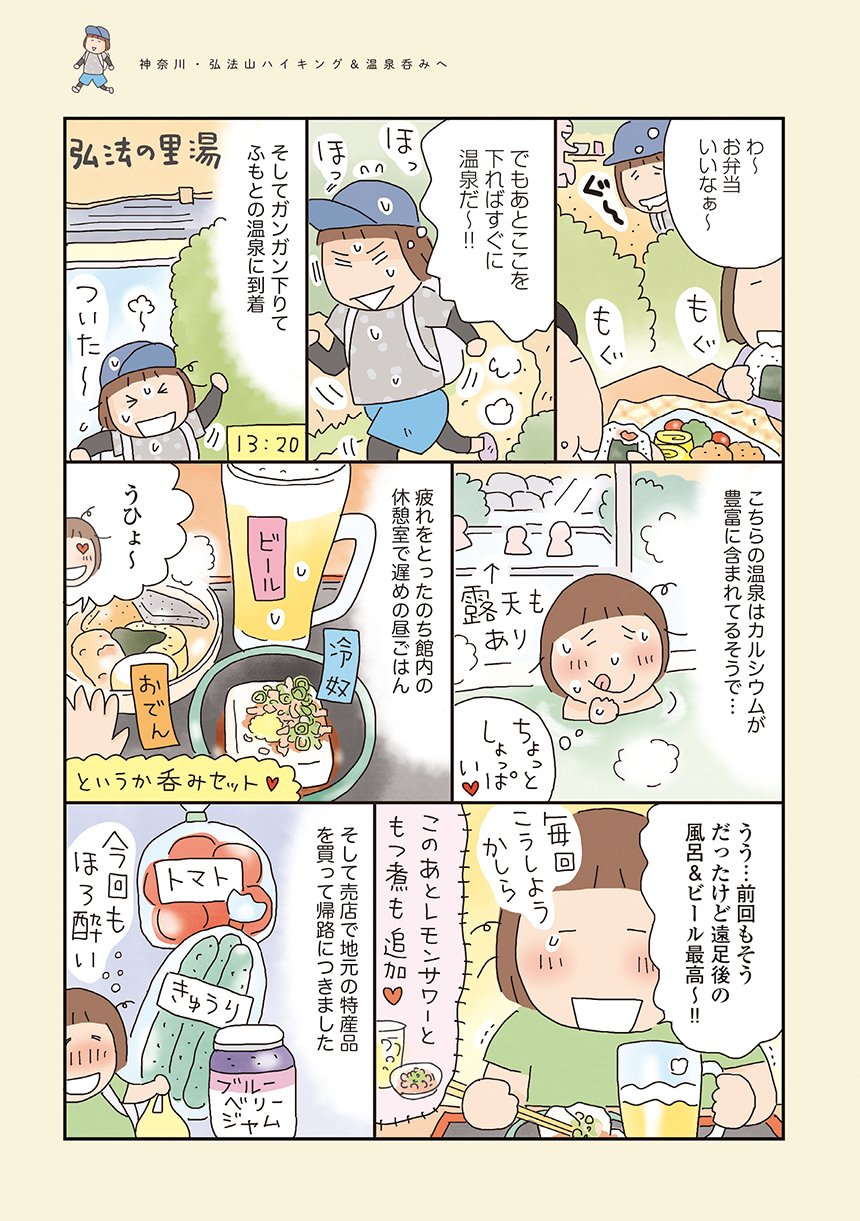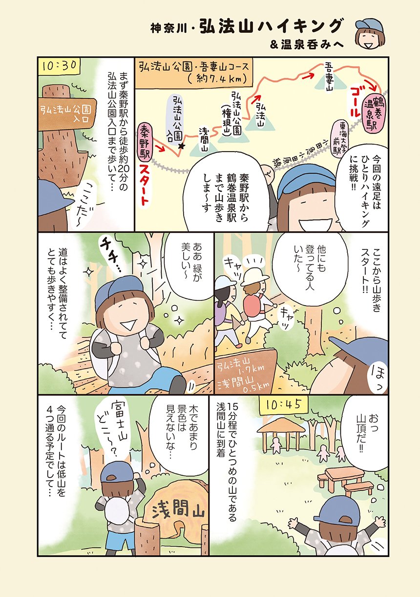 子どもが小学生になって自由時間が作れるようになった著者。ある日、貝拾いで間違って家に連れてきてしまった『やどかり』が気になり、夫と娘を送りだした後、ひとりでお台場の海へ『やどかり』を戻しに行く。その帰り道「せっかくお台場まで来たし、帰りはレインボーブリッジを歩いてみようかな…」とふと思い立ち、ドキドキ緊張しながらも潮風を感じながら橋を歩く。「こんな風に、一人で自分の時間を使うっていつぶりだろう…」 。独身時代はひとり旅で全国を旅した著者が、この日をきっかけに久し振りにお出かけを再開。大人になったけれど、やっぱりアタフタしたり緊張したりしながら、行ってみたい、やってみたいを叶えていきます。
