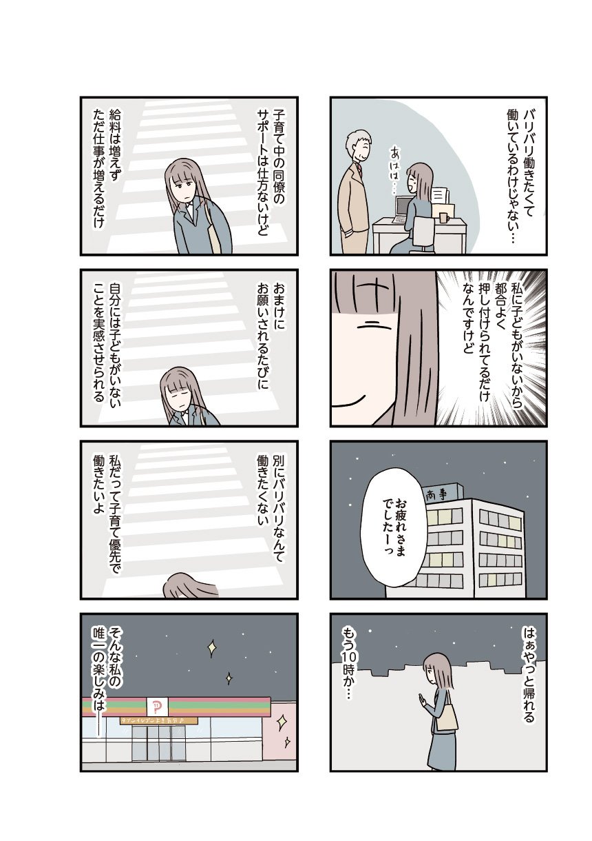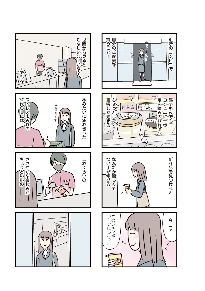 34歳OLのナツは、仕事帰りのコンビニで「ご褒美」(スイーツだったり晩酌のおつまみだったり)を買うことを、日々のささやかな楽しみとしている。