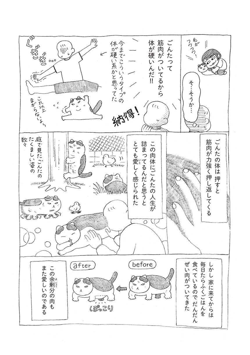 描き下ろしでは、野良猫時代のごんたとのエピソードを、50ページ以上の長編で収録。