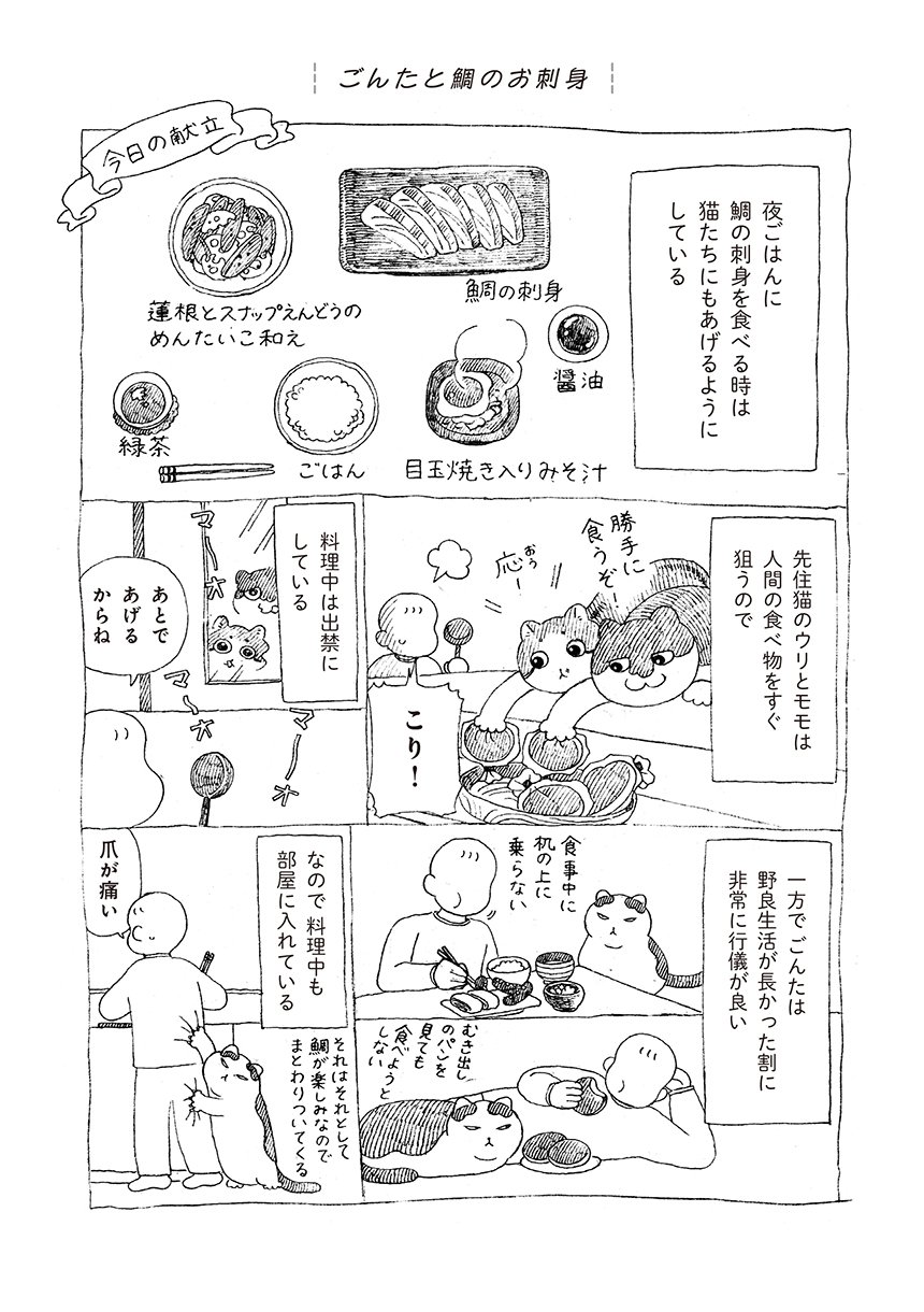 描き下ろしでは、野良猫時代のごんたとのエピソードを、50ページ以上の長編で収録。