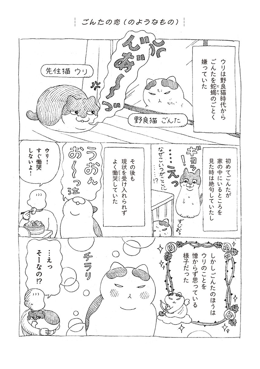 描き下ろしでは、野良猫時代のごんたとのエピソードを、50ページ以上の長編で収録。