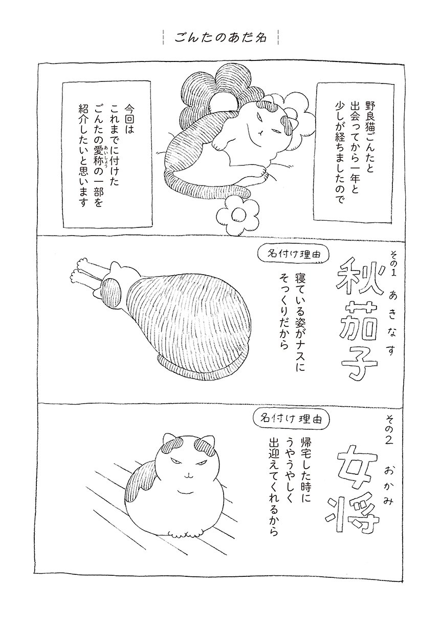 描き下ろしでは、野良猫時代のごんたとのエピソードを、50ページ以上の長編で収録。