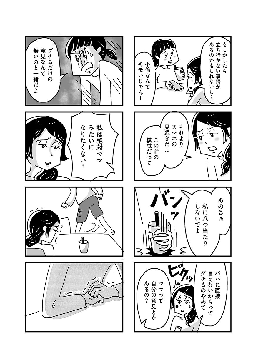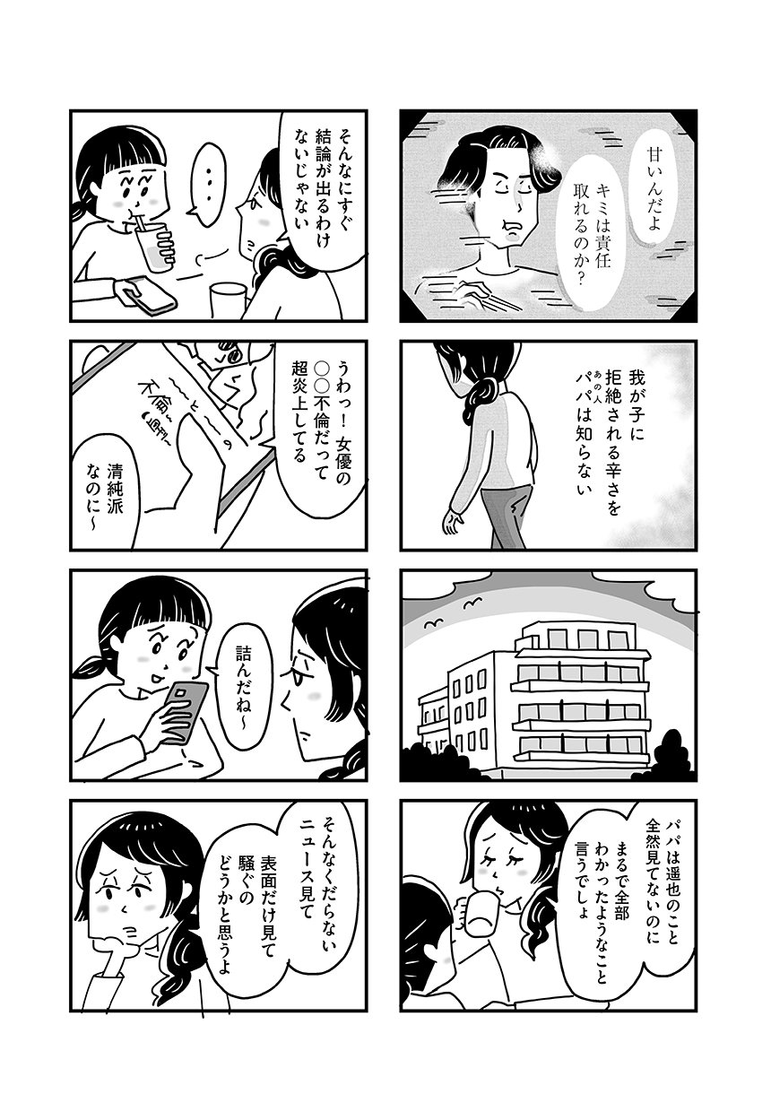 そんな中、高校時代の友人の涼子が、夫公認不倫が周囲にバレ、バッシングを浴びる様子を目の当たりにして――。