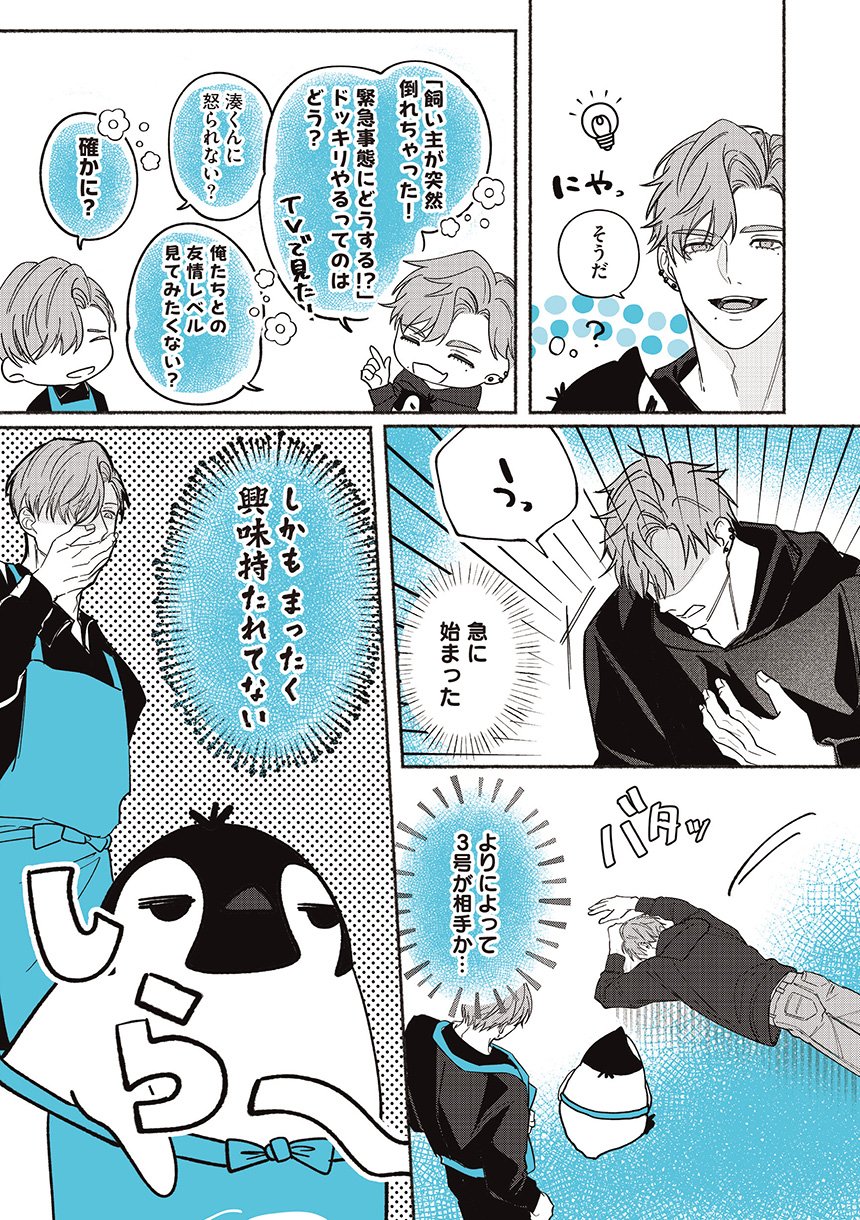 犯罪級にキュートなペンギンたちに、普段は無愛想な男子大学生の湊(みなと)も悶絶。