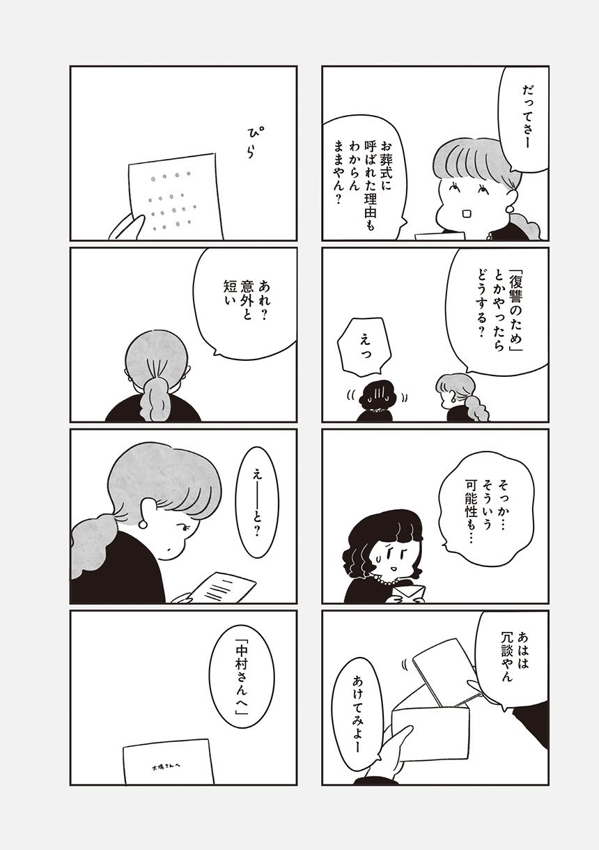 「あなたを私のお葬式に招待いたします」同級生の葬儀で再会した私たちは…