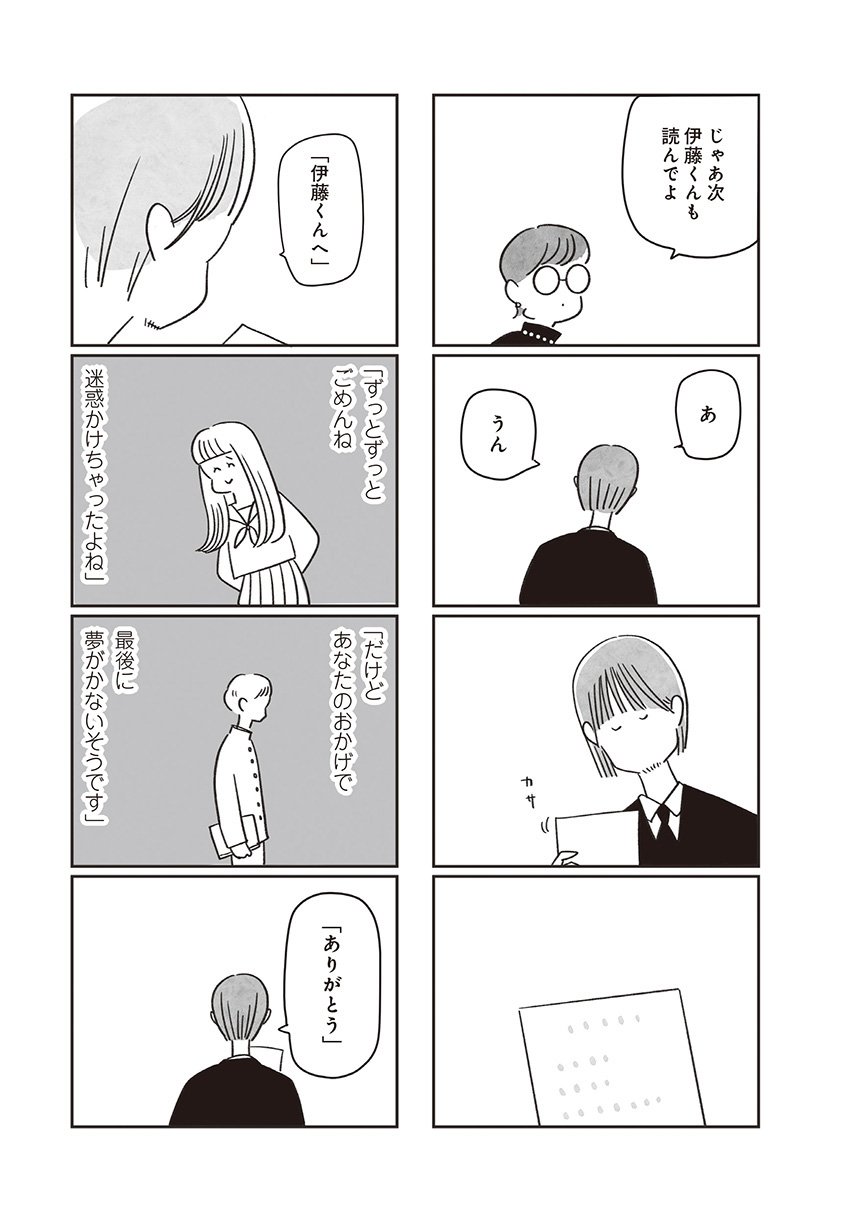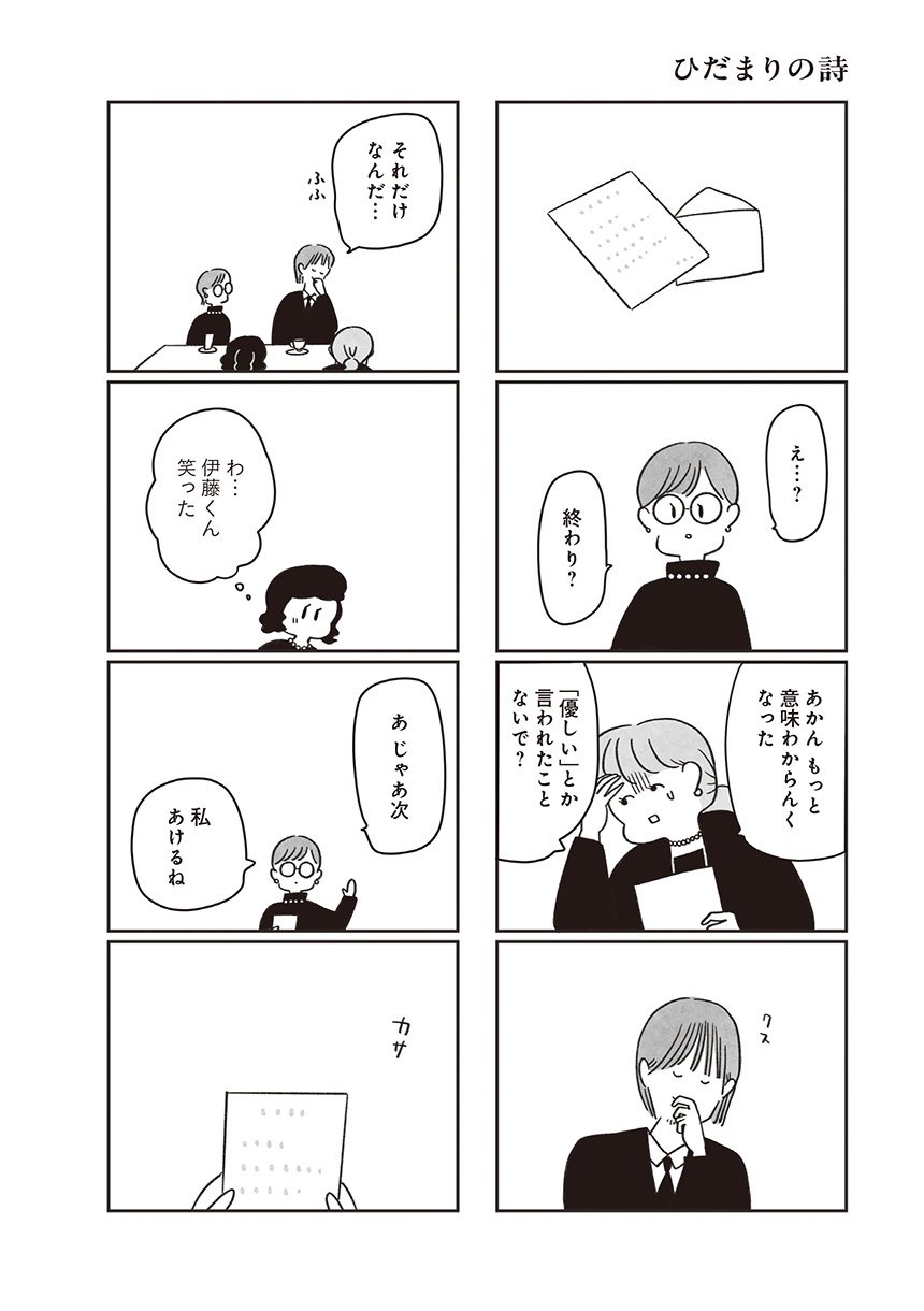 40歳を過ぎたある日、地元を離れて暮らす私のもとにお葬式の招待状が届いた。結婚式の招待状みたいに華やかなそれの差出人は、亡くなった高校の同級生。名前に覚えはある…でも、なんで私?  本当の友達なんていないと思っていた男女4人の物語。それぞれが「高校生だった頃の私が今の私を見たらどう思うだろう」と、上手くいかない現実への思いを抱えて暮らしている。住む場所も生き方も異なる4人は、高校時代に一瞬だけ重なり合う瞬間があった。