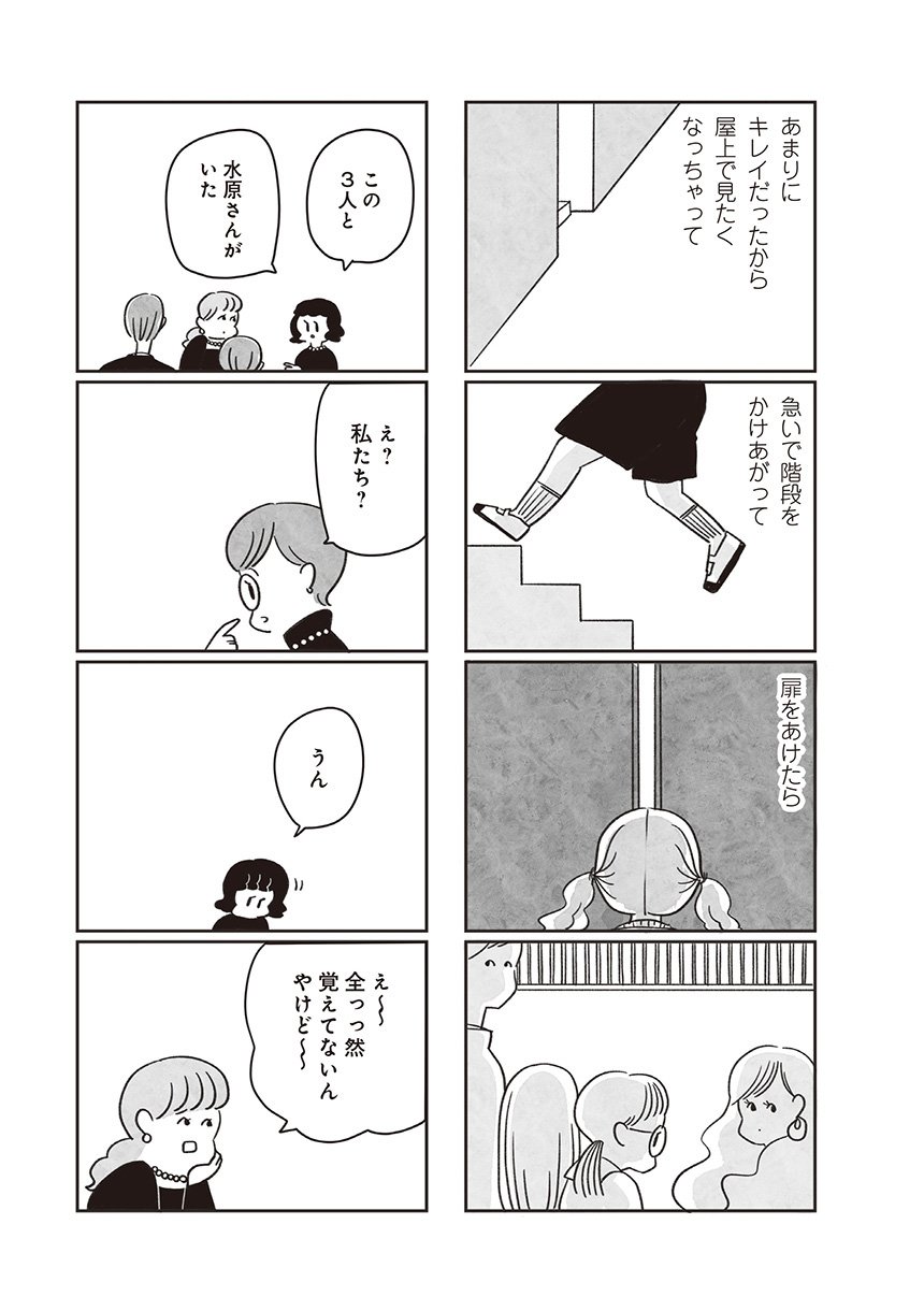 40歳を過ぎたある日、地元を離れて暮らす私のもとにお葬式の招待状が届いた。結婚式の招待状みたいに華やかなそれの差出人は、亡くなった高校の同級生。名前に覚えはある…でも、なんで私?  本当の友達なんていないと思っていた男女4人の物語。それぞれが「高校生だった頃の私が今の私を見たらどう思うだろう」と、上手くいかない現実への思いを抱えて暮らしている。住む場所も生き方も異なる4人は、高校時代に一瞬だけ重なり合う瞬間があった。