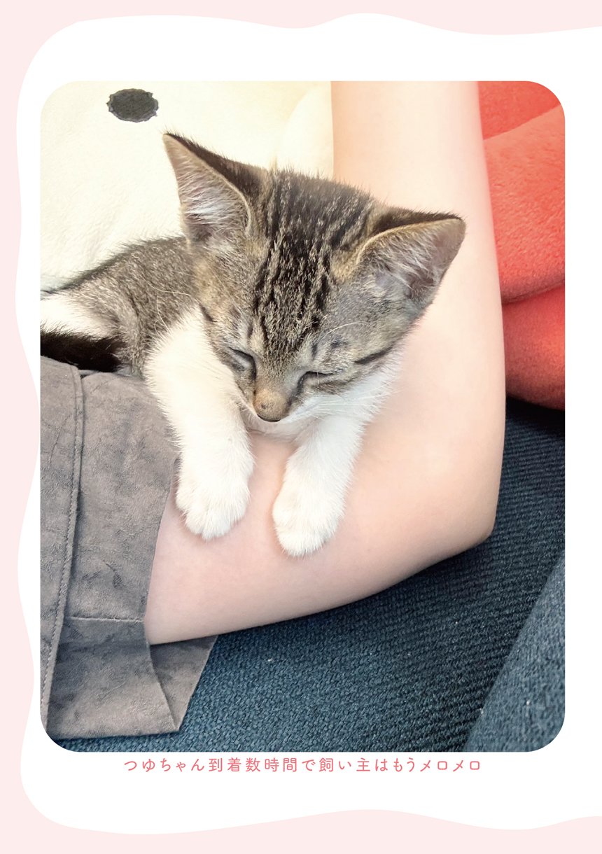 初日から甘えまくる人懐っこい性格のつゆちゃんに、飼い主の脳内は「かわいい」で埋め尽くされた―。