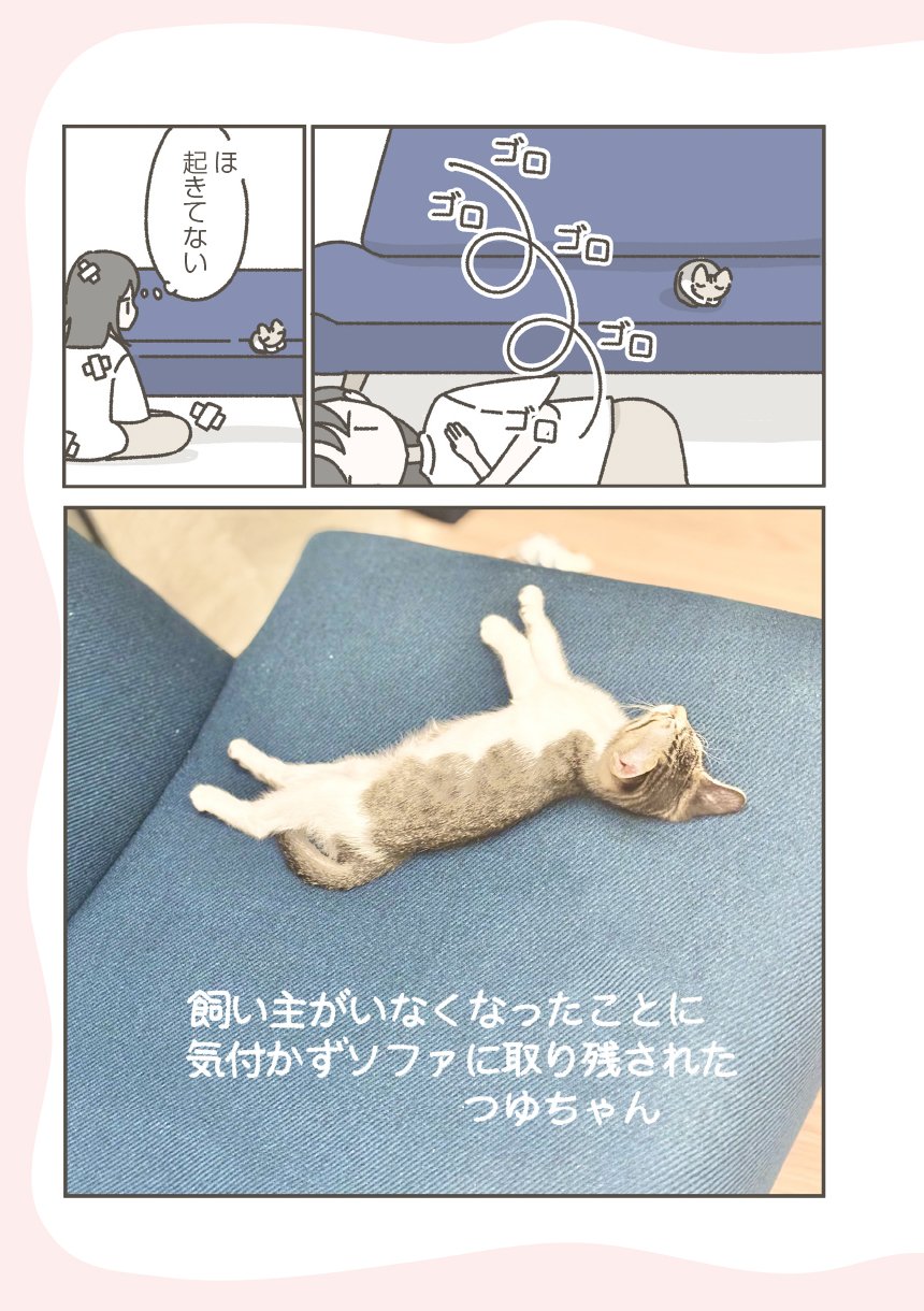 3日目①それはそう/3日目②ソファにねこが落ちていました/3日目③一緒に寝るほかありませんでした/3日目④まばたき
