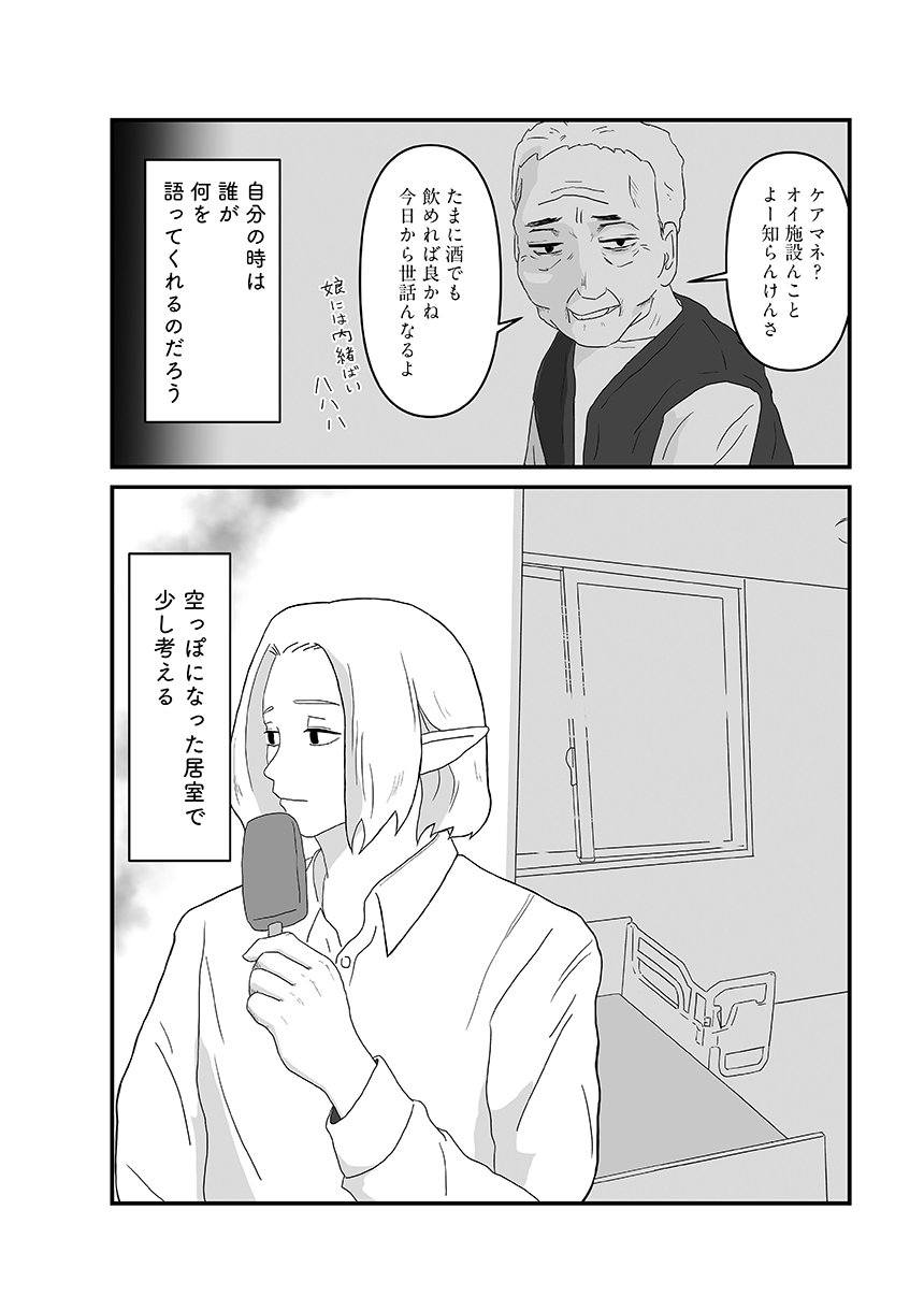 介護を通してたまたま知り合った高齢者たちの記憶に残らない個人の話、過ぎ去りし日の記憶を軽やかに、でもどこか温かく描く。現職ケアマネがつづる介護の現場コミックエッセイ。