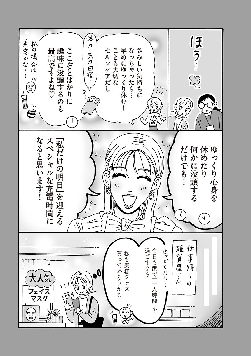 結婚出産を経てパートで働く元同期と、その元同期の娘である高校生と交流を深めていくうちに、