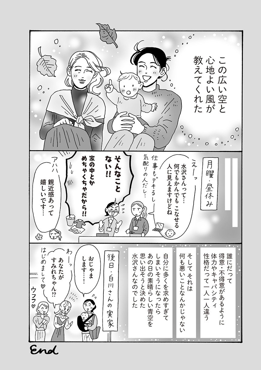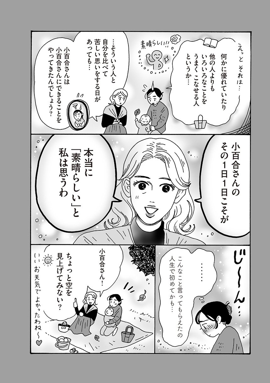 結婚出産を経てパートで働く元同期と、その元同期の娘である高校生と交流を深めていくうちに、