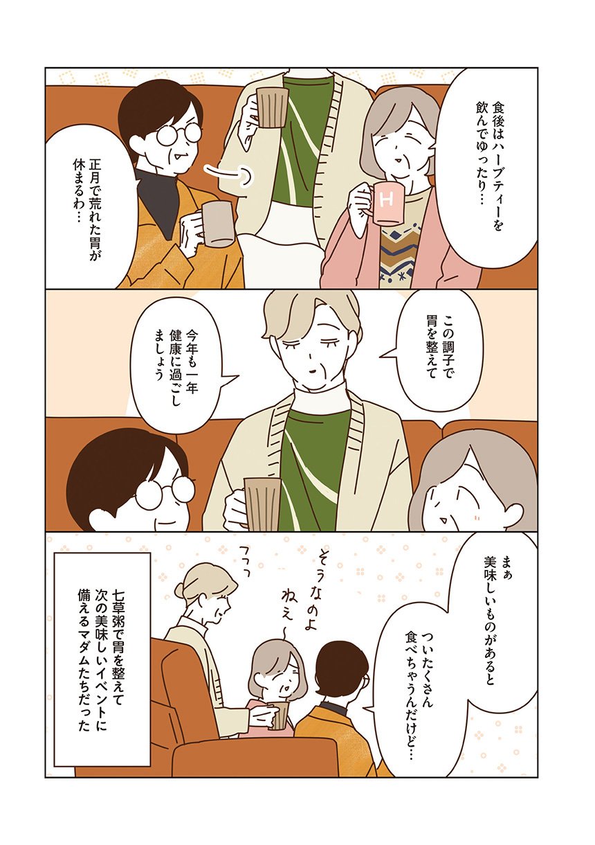 七草粥でご自愛するマダムたち