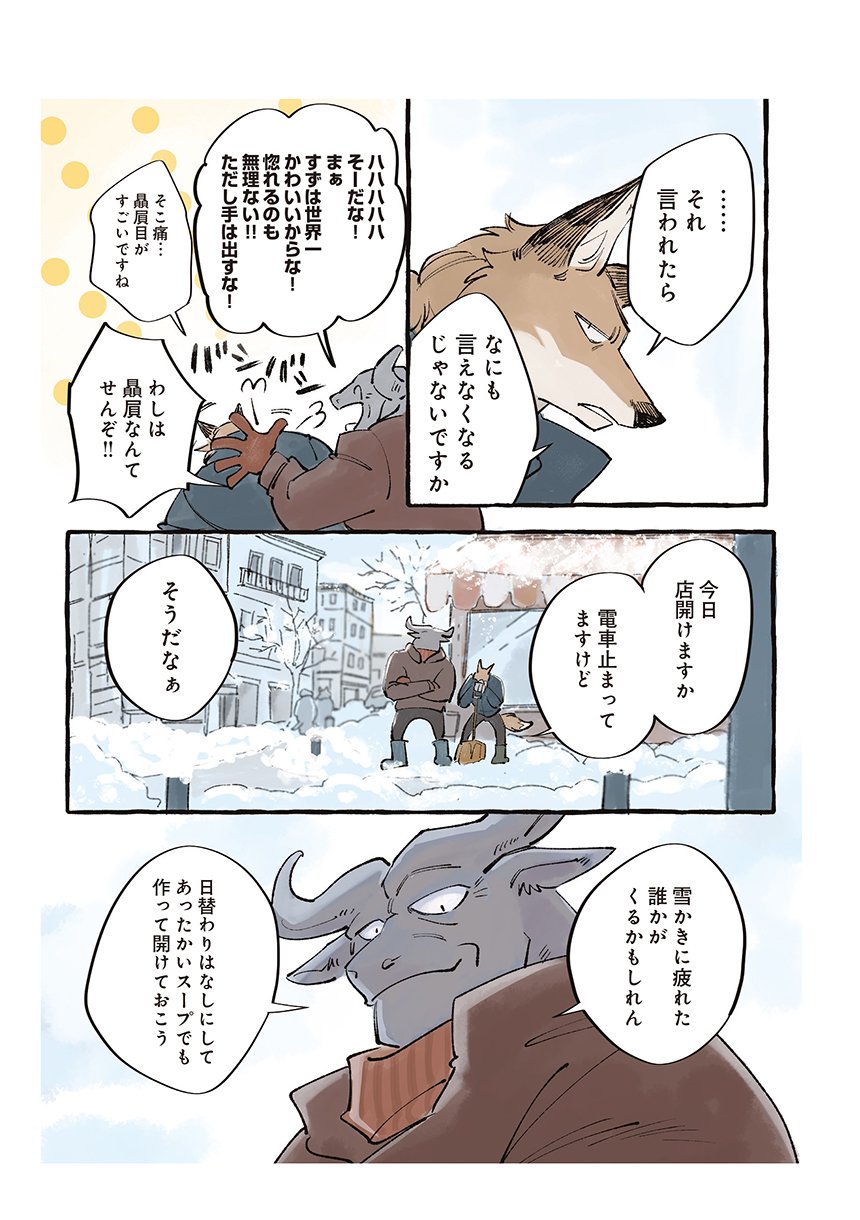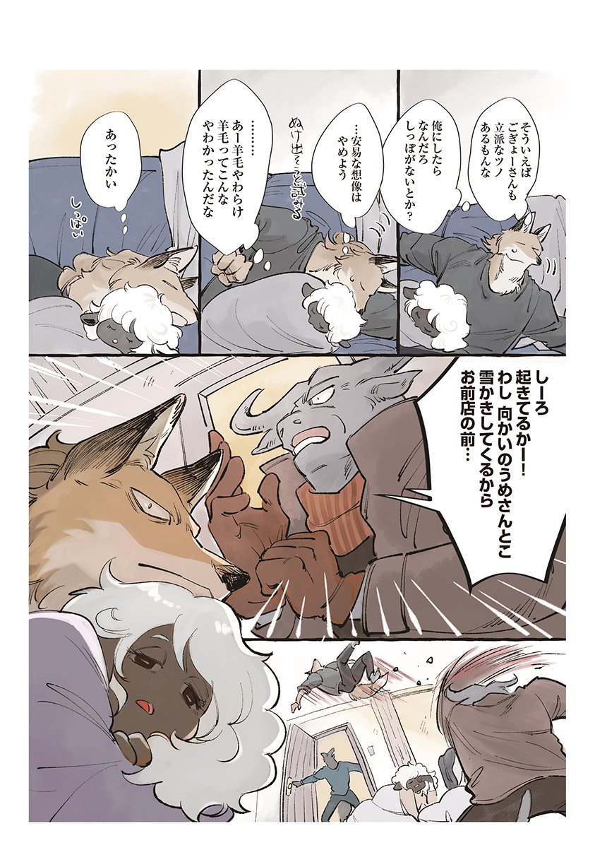 ある雪の降る日、ひとりななくさへやってきたのは、家族でひとりだけツノが生えてこないことに悩み、親元を離れた羊のすずだった。