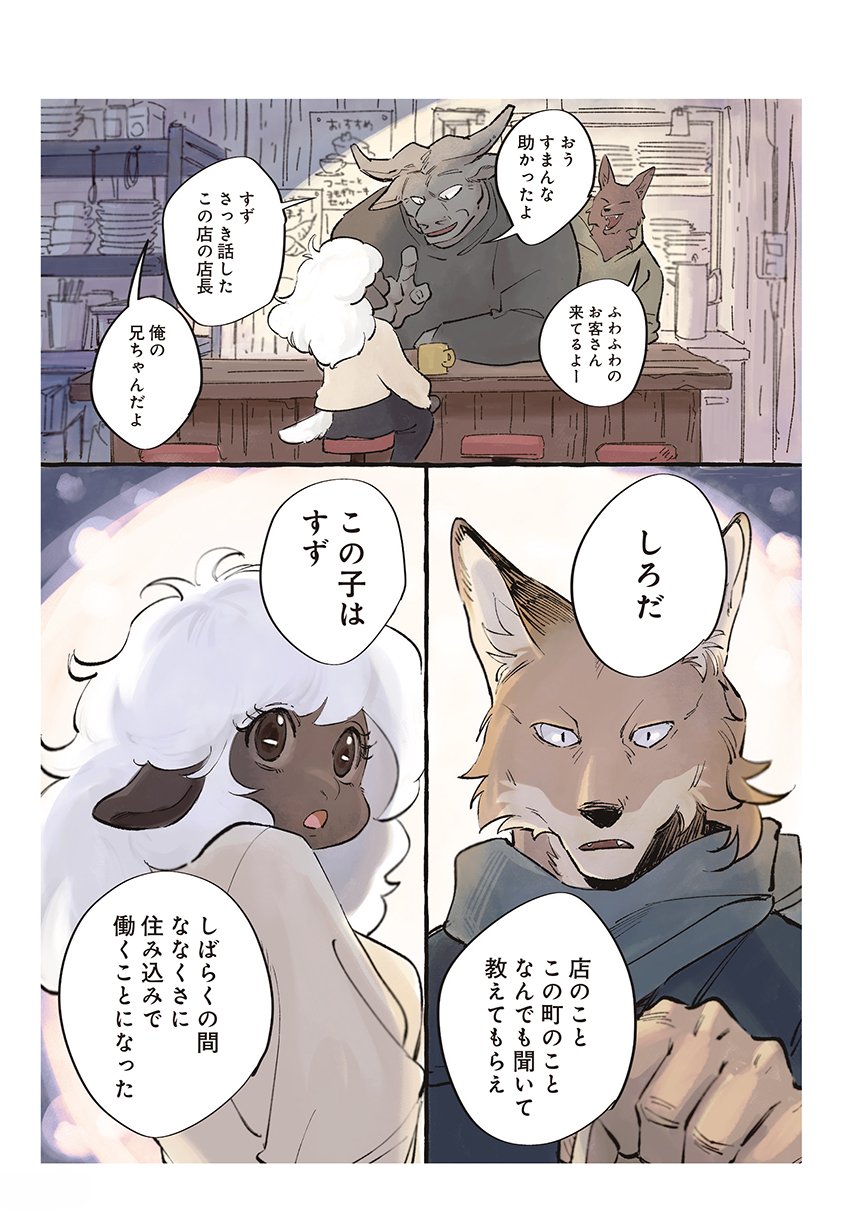 ある雪の降る日、ひとりななくさへやってきたのは、家族でひとりだけツノが生えてこないことに悩み、親元を離れた羊のすずだった。