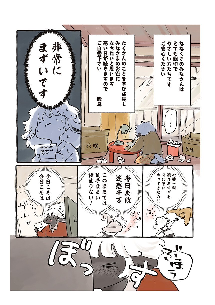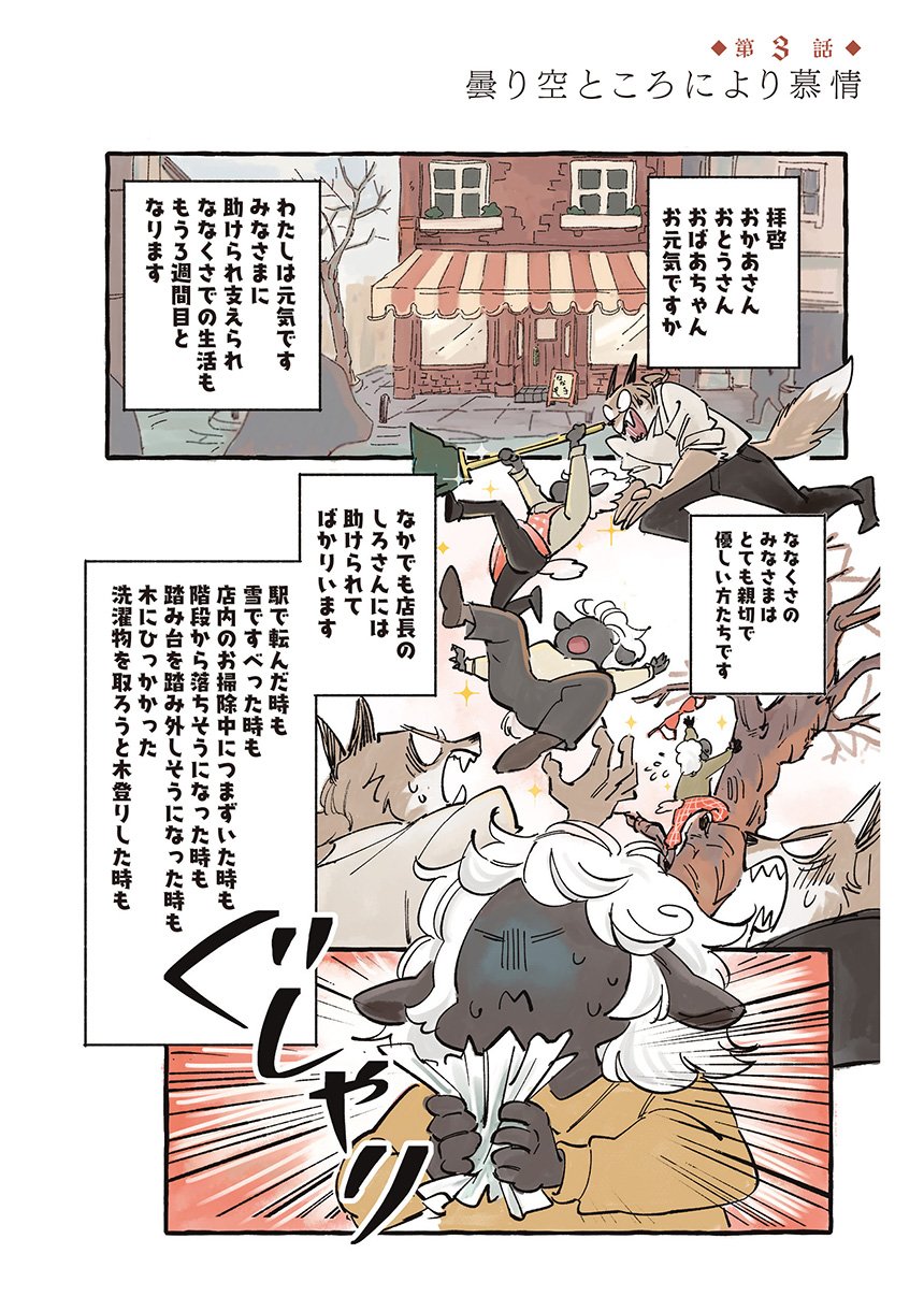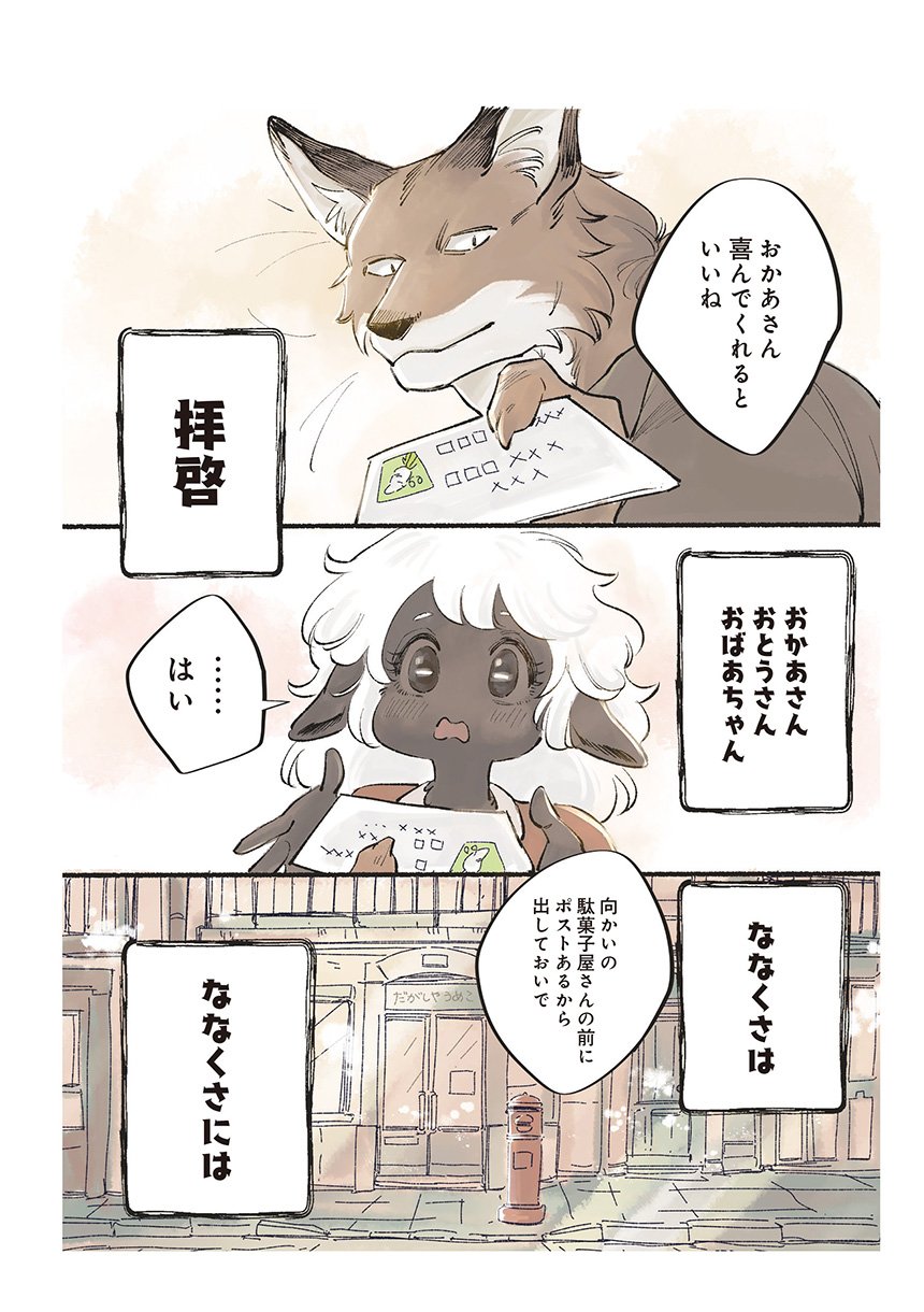 ある雪の降る日、ひとりななくさへやってきたのは、家族でひとりだけツノが生えてこないことに悩み、親元を離れた羊のすずだった。