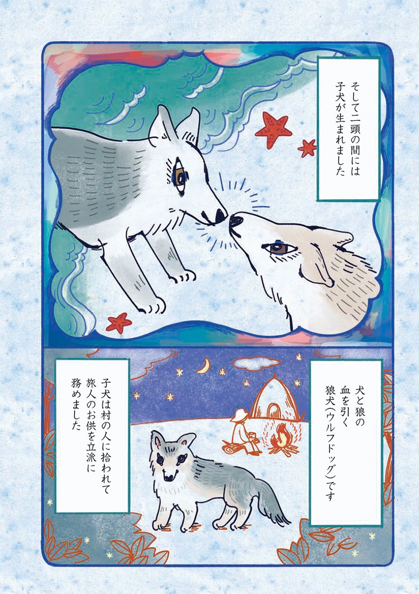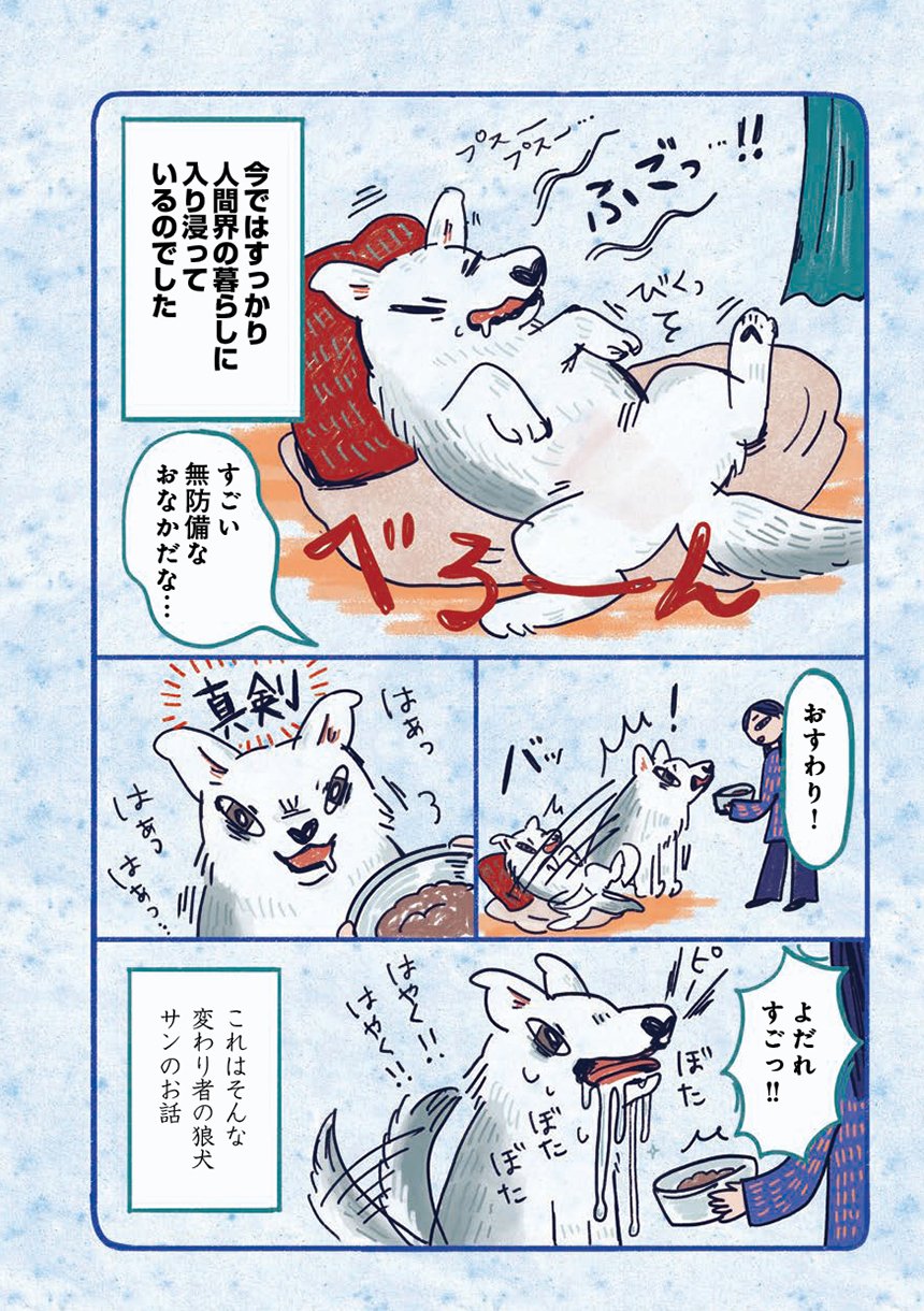 狼の血を引く狼犬のサンは気高き野生の面影はどこへやら、すっかり人間界の暮らしにどっぷりの甘えん坊。