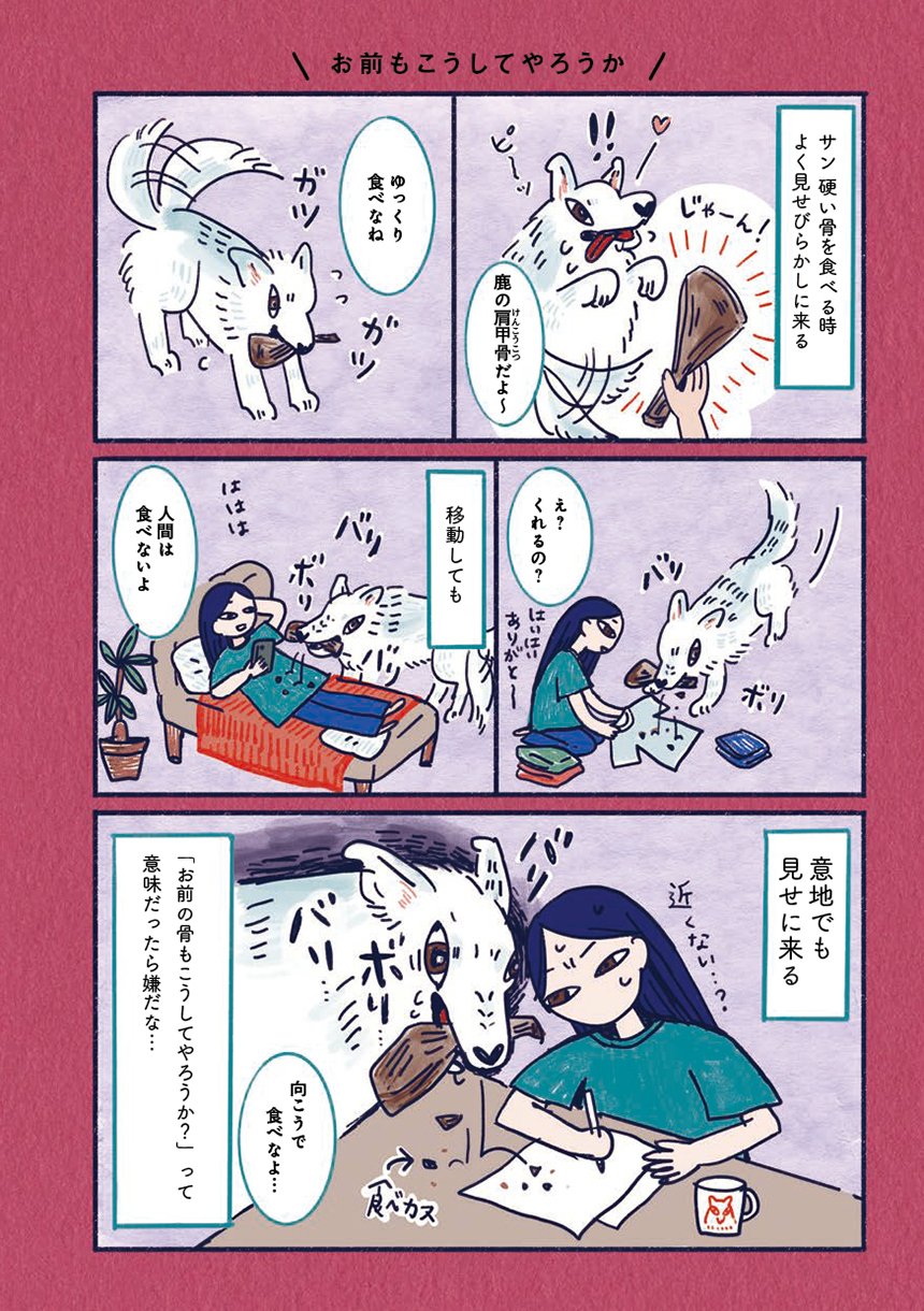 狼の血を引く狼犬のサンは気高き野生の面影はどこへやら、すっかり人間界の暮らしにどっぷりの甘えん坊。