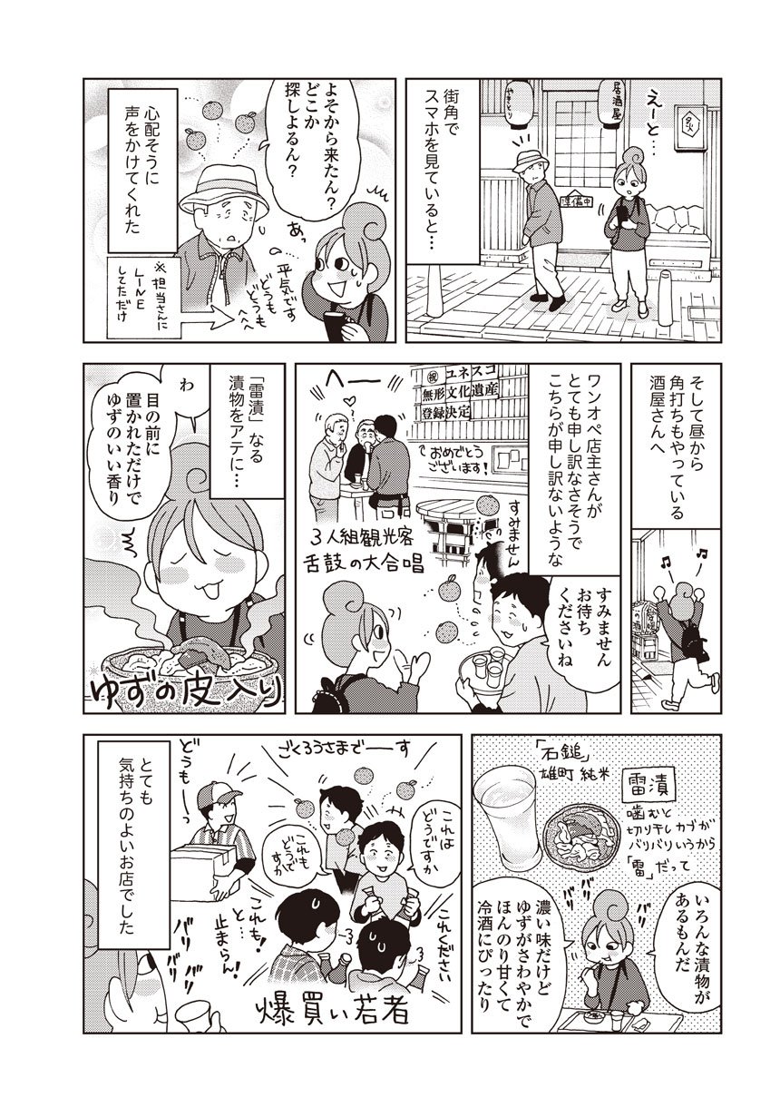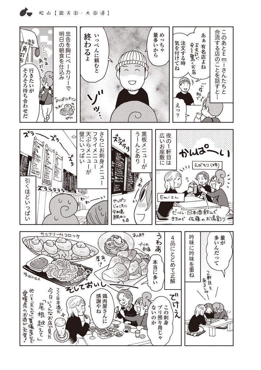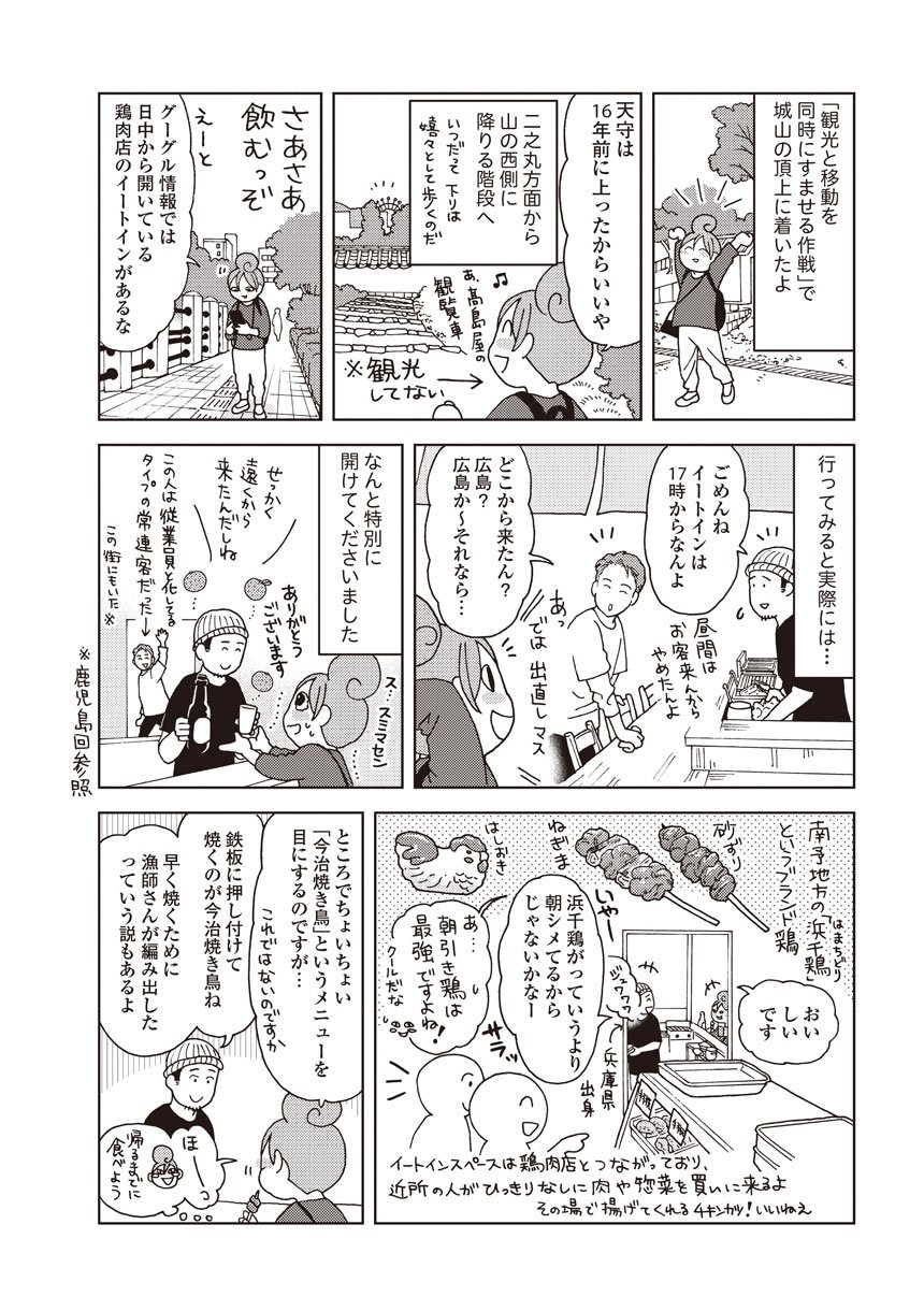 超インドア派、40代の漫画家が、日本各地の友人知人を訪ねながら飲み歩き食べ歩き。繁華街をふらついてピンとくるお店に飛び込んだり、お腹をすかせるために観光したりしなかったり、飲むこと以外に何も決めない、気の向くままのお気楽旅です! 鹿児島、姫路、秋田、横浜、松山、水戸、福井、和歌山の8県+著者地元の広島もちょっとだけご紹介~。