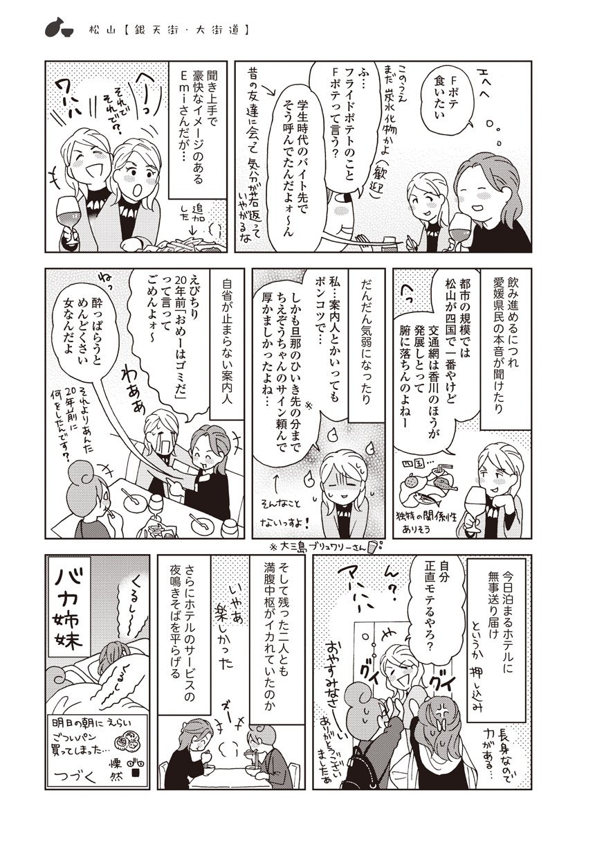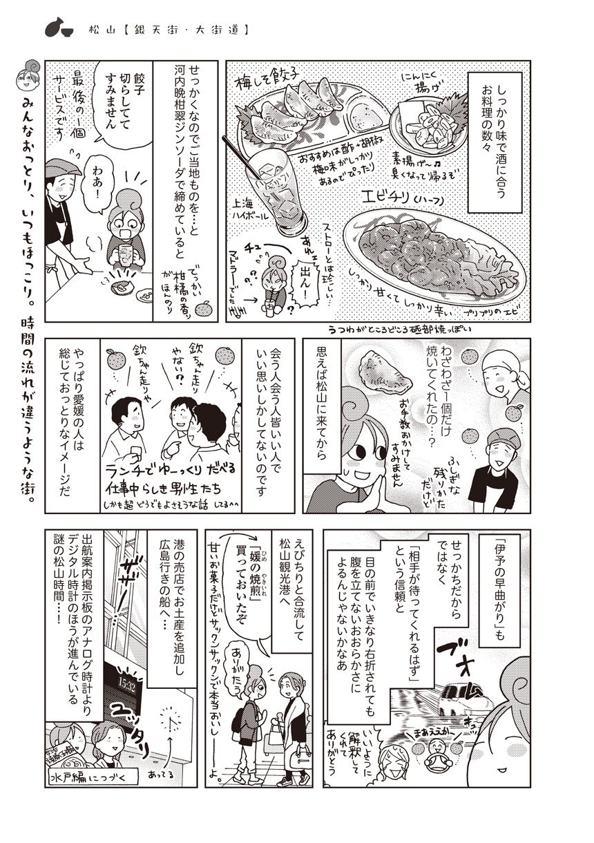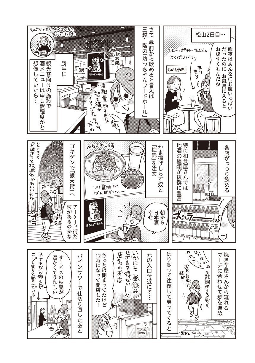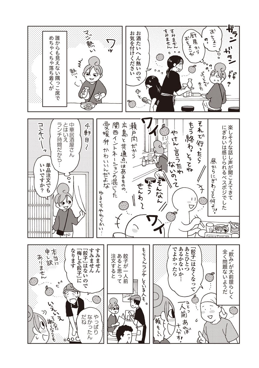 超インドア派、40代の漫画家が、日本各地の友人知人を訪ねながら飲み歩き食べ歩き。繁華街をふらついてピンとくるお店に飛び込んだり、お腹をすかせるために観光したりしなかったり、飲むこと以外に何も決めない、気の向くままのお気楽旅です! 鹿児島、姫路、秋田、横浜、松山、水戸、福井、和歌山の8県+著者地元の広島もちょっとだけご紹介~。